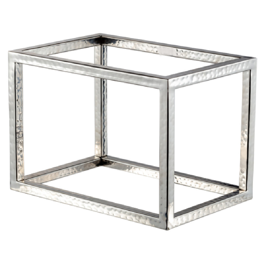The Bon Chef 2920 Presidential Riser 4-1/2"L x 4-3/4"W x 7-1/2"H Rectangular is a meticulously crafted piece designed to elevate your presentation with elegance and durability. Constructed from 18/8 stainless steel, this riser boasts a hammered finish that adds a sophisticated texture, making it an attractive choice for upscale dining environments and catering services. Its precise dimensions of 4-1/2 inches in length, 4-3/4 inches in width, and 7-1/2 inches in height make it versatile for various display configurations, offering a practical solution for maximizing vertical space. This riser is particularly suited for buffet setups, providing a sturdy platform for dishes while enhancing visual appeal. The high-quality stainless steel construction ensures long-lasting performance, resisting corrosion and maintaining its shine even with frequent use. The Bon Chef 2920 Presidential Riser is a strategic choice for businesses seeking to combine functionality with an aesthetic edge, catering to markets ranging from high-end restaurants to event planners who prioritize both style and durability in their serving ware. Its unique design allows for seamless integration into diverse service styles, making it an indispensable asset for professionals aiming to impress and deliver exceptional dining experiences.