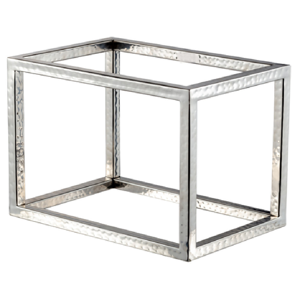 The Bon Chef 2922 Presidential Riser is a versatile display solution, measuring 7-1/2 inches in length, 8 inches in width, and 11 inches in height. Crafted from high-quality 18/8 stainless steel, it ensures durability and a long-lasting performance ideal for upscale dining environments and food service presentations. Its distinctive hammered finish not only enhances its aesthetic appeal but also provides a textured surface that adds a touch of elegance to any setting. This rectangular riser is designed to elevate culinary displays, offering a stylish way to present dishes at buffets, catered events, or in restaurant settings. The robust construction of the Bon Chef 2922 Presidential Riser allows it to withstand the rigors of daily use while maintaining a sleek and professional appearance. Its compact dimensions make it suitable for various layouts, providing flexibility and adaptability to different presentation needs. Whether used in hospitality venues, catering services, or buffet setups, the Bon Chef 2922 Presidential Riser combines functional design with a sophisticated finish, making it a valuable addition to any food presentation repertoire.