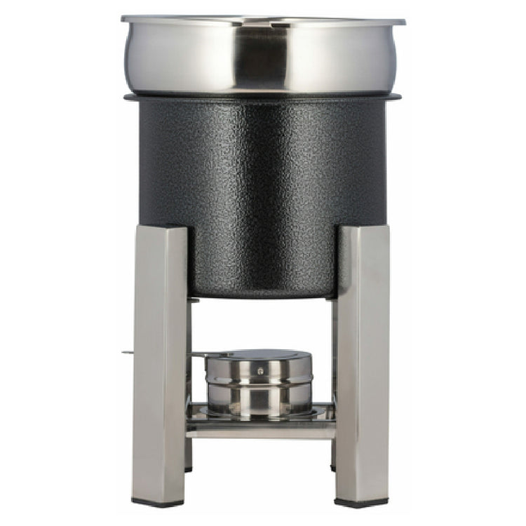 The Bon Chef 35001COLOR Power Line Soup Marmite is a versatile solution for commercial kitchens and catering services, boasting a substantial capacity of 7 quarts (1-3/4 gallons). This soup marmite measures 9-1/2 inches in diameter and 15-3/4 inches in height, providing ample volume for a variety of soup-based dishes. Crafted from stainless steel, it ensures durability and resistance to corrosion, making it suitable for high-frequency use in bustling food service environments. A unique feature of this product is its customizable color option, allowing businesses to tailor the equipment to match their branding or kitchen aesthetics. The Bon Chef 35001COLOR is designed for efficiency, balancing functionality with stylish presentation, making it ideal for buffet setups and open kitchens. Its robust construction and practical dimensions make it an appealing choice for restaurants, hotels, and catering companies seeking reliable and attractive food service solutions. This product's technical specifications highlight its suitability for diverse culinary environments, ensuring it meets the demands of both high-volume service and elegant presentation.