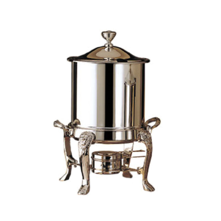 The Bon Chef 38001HLCH Lion Petite Marmite - 8 qt. with hinged lid, presents a sophisticated solution for culinary professionals seeking a fusion of elegance and functionality. This chrome-plated masterpiece boasts an 8-quart capacity, making it an ideal choice for various market segments, from high-end restaurants to bustling catering services. Its striking lion design adds an element of grandeur, making it not only a utilitarian piece but also a statement of style in any kitchen setting. The hinged lid feature allows for convenient access while ensuring the contents remain warm and secure, enhancing operational efficiency in busy kitchen environments. The chrome plating provides a sleek, polished finish that is easy to clean and resistant to tarnish, making it a durable addition to any culinary collection. Tailored for those who demand both form and function, the Bon Chef 38001HLCH is particularly suited for service establishments where presentation and quality are paramount. Whether used for serving soups, stews, or other gourmet delicacies, this petite marmite combines practicality with a luxurious aesthetic, making it an invaluable asset for culinary professionals who appreciate the finer details in food presentation and service.