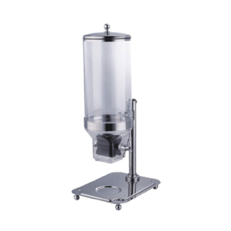 The Bon Chef 40503 Cereal Dispenser 32 Oz. Single is a compact yet high-capacity solution for any breakfast service or self-serve station, measuring 9-7/8 inches in width and standing 27 inches tall. Designed to dispense up to 32 ounces of cereal, it streamlines the serving process while minimizing waste through precise portion control. Its single-dispenser design is perfect for establishments seeking to offer a focused selection of cereals. This dispenser is ideal for hotels, cafeterias, and buffets where space efficiency and ease of use are paramount. Its sturdy construction ensures durability, withstanding the demands of high-traffic areas while maintaining an elegant presentation. The Bon Chef 40503 provides a practical and stylish way to serve cereals, enhancing the customer experience by offering fresh, easily accessible options. Its sleek form factor allows it to fit seamlessly into any setting, making it a versatile choice for various market segments within the food service industry. Whether catering to a small boutique hotel or a large-scale dining facility, this cereal dispenser efficiently meets the needs of operators looking to optimize their breakfast offerings with a reliable and aesthetically pleasing solution.