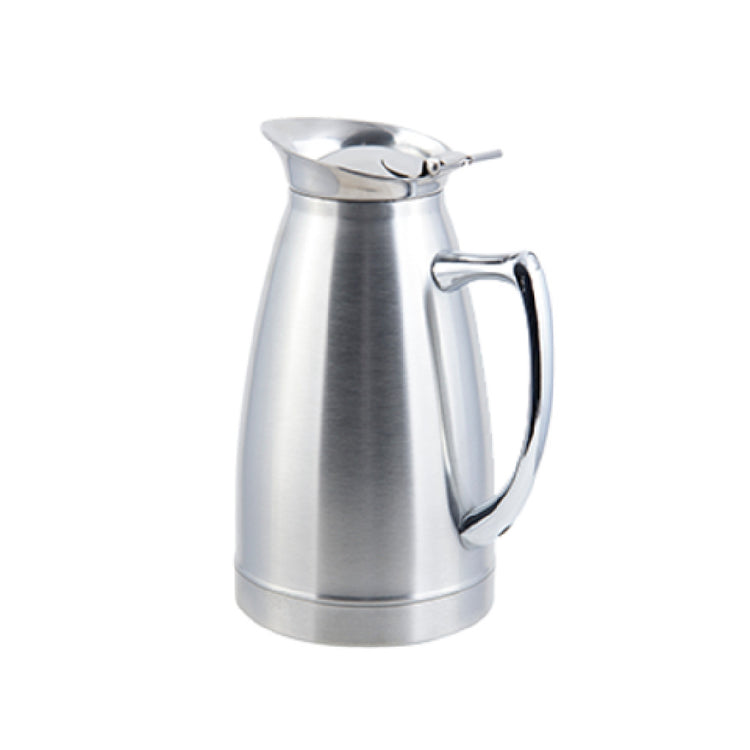 The Bon Chef 4051S Pitcher/Server is a versatile and elegantly designed serving solution, with a capacity of 20 oz. and a height of 7-5/8 inches, tailored for precision and convenience. Crafted from high-quality stainless steel, this pitcher/server boasts an insulated structure, ensuring that beverages maintain their ideal temperature for extended periods. The satin finish enhances its aesthetic appeal, making it a sophisticated addition to any setting. Designed without a crest, it presents a sleek and seamless exterior that fits effortlessly into various environments, from upscale restaurants to casual dining establishments. This pitcher/server is ideal for industry segments that prioritize durability and style, such as hospitality and catering services. Its robust construction makes it a reliable choice for frequent use, while its polished appearance adds a touch of elegance to the serving experience. The Bon Chef 4051S Pitcher/Server seamlessly combines functionality with style, providing an exceptional serving solution for diverse market needs.