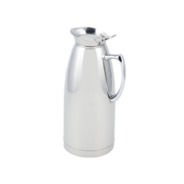 The Bon Chef 4053S Pitcher/Server 2 Qt. (64 Oz.) 11-11/2"H is an expertly crafted beverage container designed to meet the needs of various hospitality and food service environments. With a capacity of 2 quarts (64 ounces), this pitcher/server is ideal for both small gatherings and larger events. Its dimensions, standing at 11-11/2 inches in height, offer an optimal size that balances ample volume with manageable handling. Constructed from high-quality stainless steel, this product boasts a satin finish that not only enhances its visual appeal but also provides durability and resistance to wear. The insulated design ensures that beverages remain at their desired temperature for extended periods, making it suitable for both hot and cold drinks. This feature is particularly beneficial for catering services, restaurants, and hotels seeking to maintain beverage quality over time. The Bon Chef 4053S combines functionality with elegance, making it a versatile addition to any professional setting that values both style and substance in their service ware.