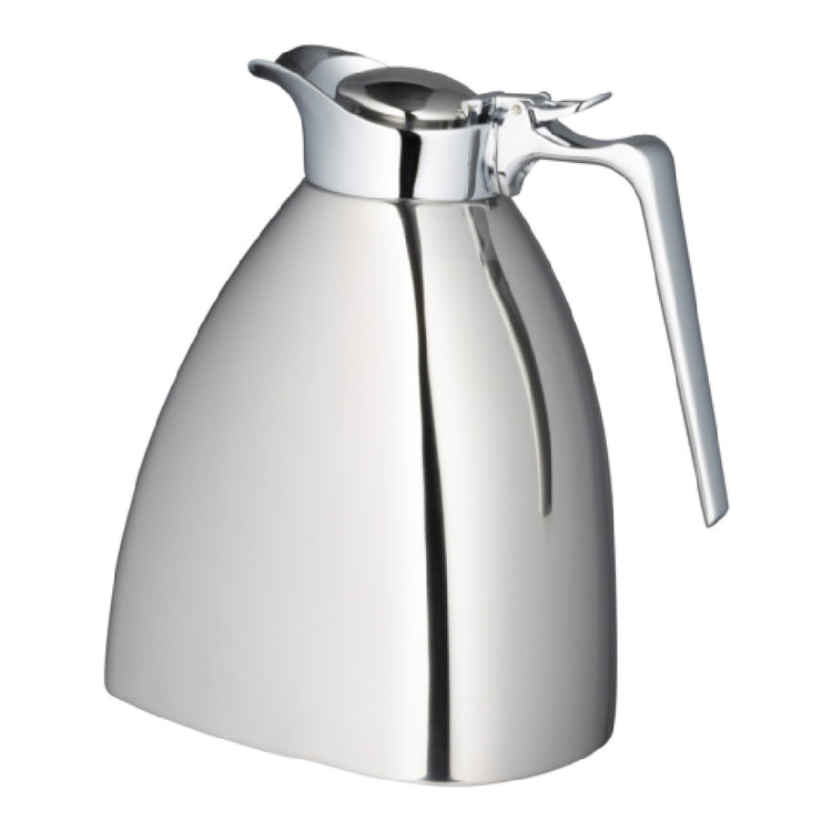 The Bon Chef 4062-BLACK DIAMOND Vacuum Server 34 Oz. Triangle Body presents a perfect blend of style and functionality for the food service industry. With a distinctive triangle body, this vacuum server stands out in design and efficiency. Crafted from stainless steel, it ensures durability and a long-lasting finish. The Black Diamond finish adds a touch of elegance, making it an ideal choice for high-end restaurants or catering services aiming for aesthetics without compromising on quality. This vacuum server's capacity of 34 ounces makes it suitable for various uses, from serving hot coffee at breakfast buffets to chilled beverages at outdoor events. Packed by six per case, it allows for streamlined inventory management and easy bulk purchasing for large operations. Its construction promises excellent thermal retention, keeping beverages at the desired temperature for extended periods. The Bon Chef 4062-BLACK DIAMOND Vacuum Server is designed for ease of handling while offering distinctive visual appeal, making it a versatile asset in settings ranging from casual cafes to sophisticated dining environments.