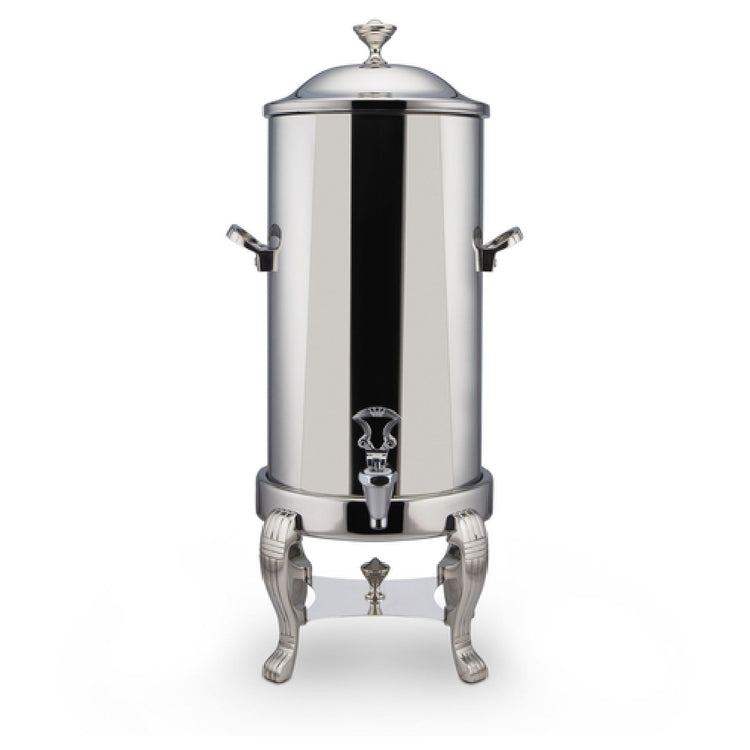 The Bon Chef 49000 Coffee Urn/Server is a 2-gallon capacity coffee dispenser that presents a sophisticated solution for catering and hospitality environments. Designed with a single-wall construction, this urn features a stainless steel exterior complemented by elegant brass trim, embodying a visually appealing and durable design. This product includes an essential cover-up with a vacuum insert, ensuring that beverages are well-contained and efficiently dispensed. To maintain optimal temperature stability for up to three hours, coffee must be brewed at a minimum of 200°F. While the urn is non-insulated, the vacuum insert contributes to maintaining the desired temperature of the brewed coffee. Its Roman style adds a touch of classic elegance, making it an attractive centerpiece for serving stations at events, conferences, or buffet settings. The Bon Chef 49000 Coffee Urn/Server is a versatile piece of equipment that seamlessly blends style with practicality, catering to the needs of high-volume serving environments while adding aesthetic value to any professional setting. Its robust construction and thoughtful design make it a reliable choice for those seeking to enhance their beverage service experience.