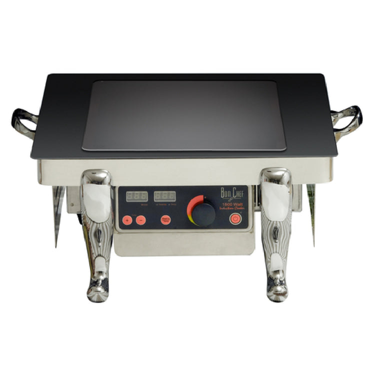 The Bon Chef 50141-1 Display Stand is a versatile and efficient unit, measuring 22 inches by 17 inches by 8-1/2 inches, making it an ideal choice for a variety of display needs in the culinary industry. This single display stand is equipped with one induction stove, providing a reliable 110v/60/1-ph power supply and an impressive 1800 watts of cooking power. The inclusion of a cord and plug ensures ease of installation and use. Its compact size and powerful performance make it suitable for various market segments, including catering services, buffet settings, and high-end restaurant kitchens, where both efficiency and presentation are paramount. The induction stove feature allows for precise temperature control, enhancing the user's ability to maintain and present dishes at optimal temperatures. The Bon Chef 50141-1 Display Stand combines both functionality and practicality, making it an essential tool for professional chefs and catering businesses looking to create an engaging and efficient food display setup. Its robust design and technical specifications underscore its value in environments that demand both aesthetic appeal and high-performance cooking capabilities.