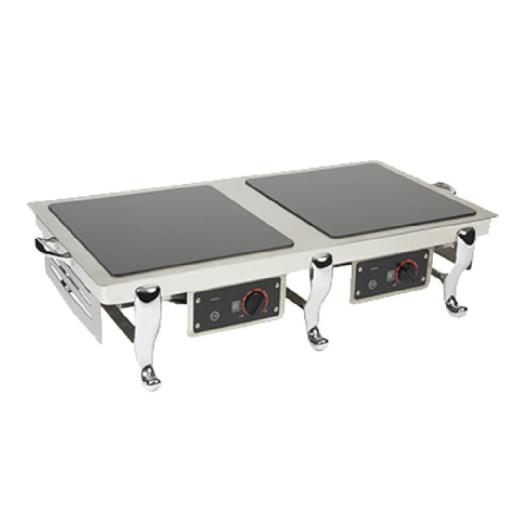 The Bon Chef 50142-1 Display Stand is a versatile and robust product designed for culinary professionals seeking efficiency and style in presentation. Measuring 38 inches by 17 inches by 8-1/2 inches, this double display stand integrates two induction stoves, making it a perfect choice for catering events, buffet setups, and live cooking demonstrations where precision and reliability are paramount. Operating on a 110v/60/1-ph power supply, it delivers a powerful 1800 watts, ensuring quick heating and consistent cooking performance. The included cord and plug provide ease of use and flexibility in various settings. This display stand is crafted to support dynamic culinary environments, offering a seamless blend of function and design. Its technical specifications cater to the needs of professional chefs and event coordinators, delivering a reliable cooking solution for diverse market segments such as hotels, banquet halls, and upscale restaurants. The Bon Chef 50142-1 is not just a display stand; it represents a strategic investment in quality and functionality, designed to enhance culinary presentations and elevate food service operations to new heights.