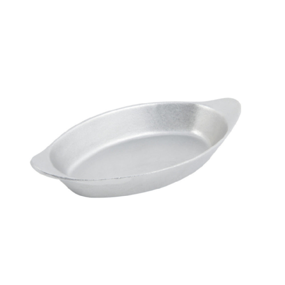The Bon Chef 5021 Au Gratin Pan is an exceptional kitchen tool designed with both functionality and elegance in mind. With a capacity of 16 oz., this pan is perfect for cooking and serving a variety of dishes. Its dimensions of 5-1/4" x 9-1/4" provide ample space for food preparation, making it suitable for both personal and professional culinary environments. The oval shape of the pan enhances its aesthetic appeal, while also allowing for even heat distribution during cooking. Crafted from durable aluminum, the pan ensures long-lasting performance and excellent heat conductivity. The Pewter-Glo finish not only adds a sophisticated touch to its appearance but also offers a layer of protection against wear and tear, ensuring the pan remains a staple in your kitchen for years to come. This versatile au gratin pan is ideal for restaurants, catering businesses, and home chefs who value quality cookware. Its unique combination of style and practicality makes it a must-have for anyone looking to elevate their cooking experience. Whether you're creating a classic potato gratin or a modern twist on a traditional dish, the Bon Chef 5021 Au Gratin Pan promises to deliver exceptional results every time.