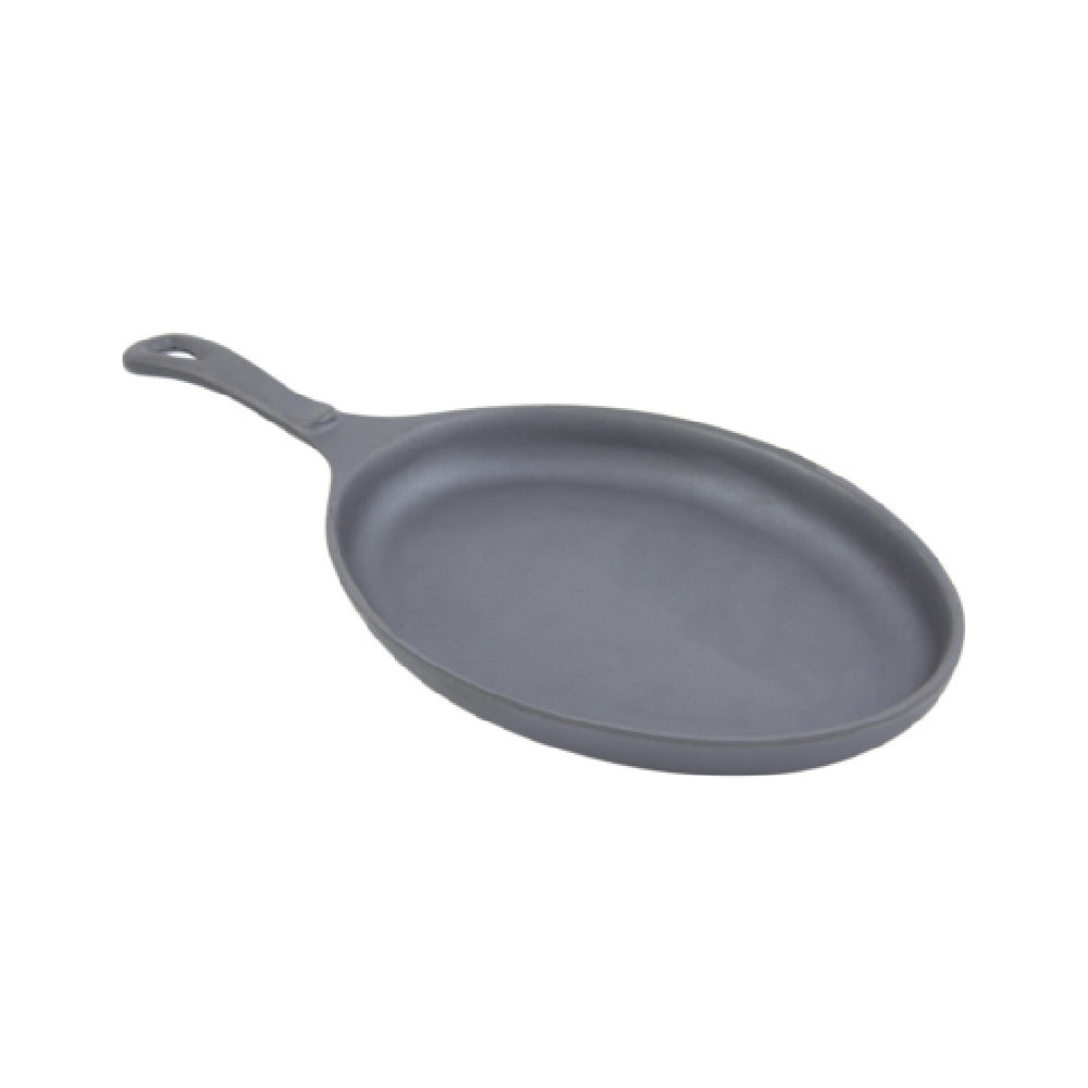 The Bon Chef 5037T Tempo Skillet - 7-1/8" x 9-7/8" Oval is a versatile cooking essential, designed to meet the diverse needs of professional kitchens. Constructed from high-quality aluminum, this skillet ensures excellent heat conductivity and distribution, making it an ideal choice for evenly cooked meals. The matte black finish not only enhances its aesthetic appeal but also provides a durable, scratch-resistant surface suitable for rigorous kitchen environments. Its distinct oval shape, measuring 7-1/8" in width and 9-7/8" in length, offers ample cooking space, making it perfect for preparing a variety of dishes, from seared meats to sautéed vegetables. This skillet's unique design caters to chefs and culinary enthusiasts who value both functionality and style, fitting seamlessly into any kitchen setting, whether it's a bustling restaurant or a home kitchen. The Bon Chef 5037T Tempo Skillet is a practical choice for those seeking a reliable and stylish cooking tool that delivers professional results with each use. Its combination of high-grade materials and thoughtful design underscores its position as a valuable addition to any cookware collection, providing exceptional performance across different culinary applications.