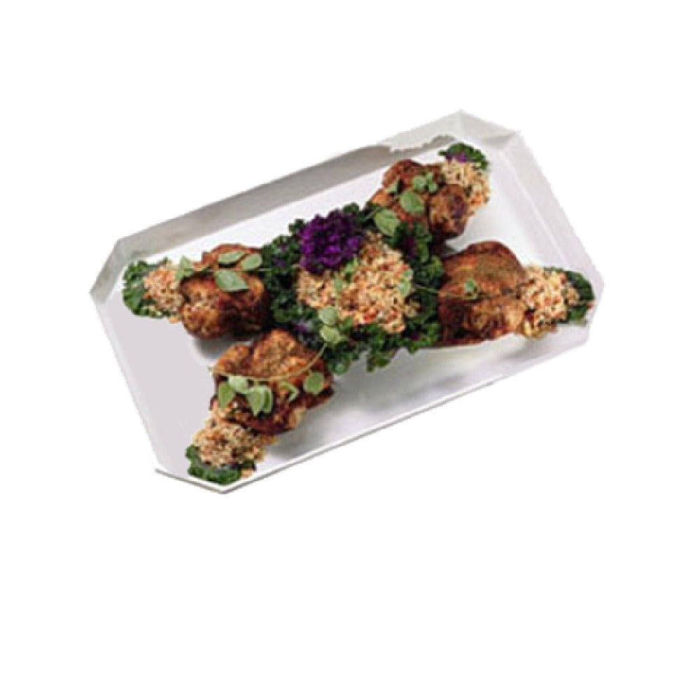 The Bon Chef 5096IVY Serving/Casserole Dish is a versatile and elegant kitchenware item tailored for culinary professionals and keen home chefs alike. With a substantial capacity of 3 gallons and 28 oz., it is perfectly suited for serving large gatherings or preparing significant quantities of food. The dish measures 16 inches by 26 inches with a height of 2-1/2 inches, providing ample space for elaborate casseroles or generous servings of any dish. Its distinctive octagonal shape adds a touch of sophistication to any table setting, making it a standout piece. Constructed from high-quality aluminum, the dish boasts a ceramic-look coating that enhances its aesthetic appeal while ensuring durability and ease of maintenance. The Sandstone finish in Ivory lends it a classic and timeless look, suitable for a variety of dining environments. Furthermore, the Bon Chef 5096IVY dish is NSF certified, guaranteeing adherence to rigorous public health and safety standards. This feature makes it an ideal choice for professional kitchens where reliability and safety are paramount. Whether used in upscale restaurants or home kitchens, this serving/casserole dish combines functionality with a refined design, catering to the diverse needs of the food service industry.