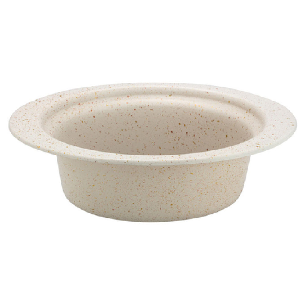 The Bon Chef 5203DESERT HotStone Cucina Pan 3 Qt. 24 Oz. 13-1/8" X 8-7/8" X 4-1/4" H is an expertly crafted kitchen essential, ideal for culinary professionals seeking durability and style. This full-size, oval pan is constructed from high-quality 18/8 stainless steel, ensuring exceptional strength and resistance to corrosion, making it a reliable choice for busy kitchens. With a generous capacity of 3 qt. 24 oz., it is perfect for preparing and serving a wide variety of dishes. The pan is oven safe up to 375°F, which makes it versatile for different cooking techniques, from searing to baking. Its plain design, coupled with a unique Desert finish, adds a touch of elegance to any table setting, making it suitable for high-end dining establishments or home kitchens aiming to impress. The dimensions of 13-1/8" x 8-7/8" x 4-1/4" H provide ample space for cooking larger portions, while still fitting comfortably in standard kitchen spaces. The Bon Chef 5203DESERT HotStone Cucina Pan represents a blend of functionality and aesthetic appeal, making it a valuable asset for chefs and cooking enthusiasts who prioritize quality and presentation in their culinary endeavors.
