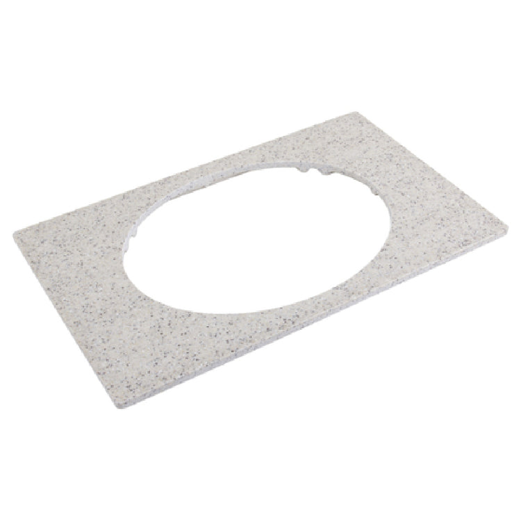 The Bon Chef 52057 E Z Fit Bonstone Tile, measuring 12-3/4 inches by 20-13/16 inches, is a single-size tile designed for specialized applications within the food service industry. This product features one precise cutout for accommodating the #2278 item, enhancing its utility for specific setups. It is important to note that the Bonstone Tile is not intended for use with steam tables, aligning its function with other types of culinary presentations and displays. Crafted for reliability and ease of fitting, this tile integrates seamlessly into existing food service environments, making it an excellent choice for establishments that require adaptable and specialized serving solutions. The Bon Chef 52057 E Z Fit Bonstone Tile stands out for its specific dimensions and integration capabilities, offering a tailored solution for chefs and catering professionals seeking precision and quality in their food presentation equipment. Its design ensures compatibility with a targeted range of culinary tools, reinforcing its role as a valuable component in optimizing kitchen and buffet line operations.