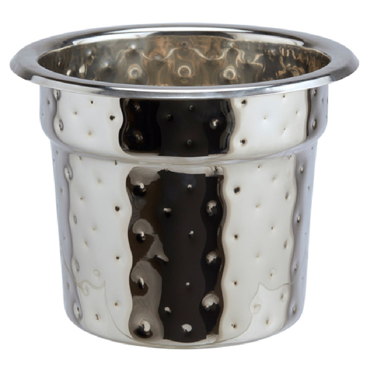 The Bon Chef 5211HF Soup Tureen is a meticulously crafted piece designed for both presentation and functionality. With a capacity of 7 quarts and 1 pint, this soup tureen is perfect for serving large gatherings or busy commercial kitchens. Its dimensions, measuring 10-5/8 inches by 8-1/4 inches, make it a substantial centerpiece while maintaining a versatile size that fits seamlessly into various culinary settings. The tureen boasts a striking hammered finish, offering a sophisticated aesthetic that enhances any dining experience. Constructed from high-quality stainless steel, it ensures durability and longevity, ideal for frequent use in high-demand environments. Additionally, the Bon Chef 5211HF Soup Tureen is NSF certified, underscoring its compliance with rigorous public health standards and making it a reliable choice for professional chefs and caterers. Whether used in a restaurant, hotel buffet, or catered event, its elegant design and robust build provide a unique value proposition, catering to both the upscale dining market and the practical needs of culinary professionals seeking reliable service ware. This soup tureen stands out in the industry for its combination of visual appeal and functional excellence, making it a valuable addition to any food service operation.