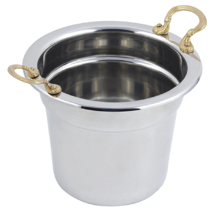 Bon Chef 5211HR Soup Tureen 7 Qt. 1 Pt. 10-5/8" X 8-1/4" is a meticulously crafted stainless steel container designed to meet the diverse needs of the foodservice industry. With a substantial volume capacity of 7 quarts and 1 pint, it provides ample space for serving soups, stews, or other liquid dishes in both professional and high-volume settings. Its dimensions - 10-5/8 inches in length and 8-1/4 inches in width - ensure a practical size for easy handling and efficient space utilization on buffet tables or serving areas. The soup tureen features round handles that enhance its functionality by ensuring secure and comfortable transportation, crucial for maintaining service efficiency. The plain design emphasizes a sleek, timeless aesthetic, making it suitable for various dining environments, from elegant catered events to casual dining scenarios. Constructed from durable stainless steel, the tureen is both resilient and easy to clean, providing long-term value and reliability. Furthermore, the Bon Chef 5211HR is NSF certified, which guarantees its adherence to high public health and safety standards, an essential consideration for any establishment prioritizing safety and compliance. This versatile soup tureen is an indispensable asset for culinary professionals seeking quality and performance in their serviceware.