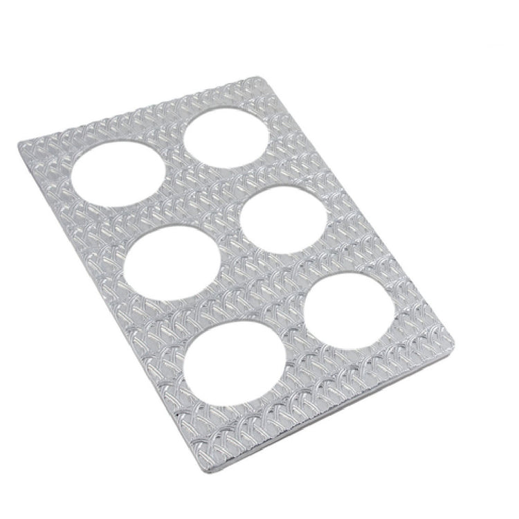 The Bon Chef 52153 E Z Fit Tile Single Trellis Design is a meticulously crafted piece, measuring 12-3/4 inches by 20-13/16 inches, specifically designed to accommodate six #9202 units. Its elegant Trellis design, coupled with a sophisticated Pewter-Glo finish, makes it a standout choice for various segments within the foodservice industry, including upscale restaurants, catering services, and hospitality venues aiming for both functionality and aesthetic appeal. The E Z Fit Tile series offers a seamless integration into existing setups, ensuring ease of installation and adaptability. This single tile design not only enhances the visual appeal of the serving area but also provides a durable and stable surface for holding and displaying culinary creations. The precision in its dimensions ensures compatibility and ease of use, especially for operations requiring efficient space management. With its robust construction and high-quality finish, the Bon Chef 52153 is an ideal solution for establishments prioritizing both style and durability in their serviceware, effectively bridging the gap between form and function for professionals in the industry.