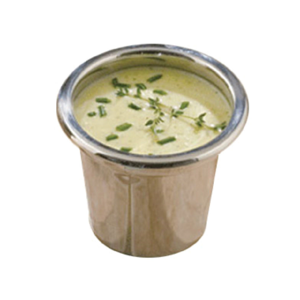The Bon Chef 5225 Condiment Pot is a versatile and practical addition to any kitchen, offering an 18 oz. capacity and measuring 4" x 4", perfect for holding various condiments and sauces. Crafted from high-quality stainless steel, this condiment pot ensures durability and a sleek, professional appearance, making it ideal for both commercial and home use. Its stainless steel construction not only provides a sophisticated look but also promises long-lasting performance and resistance to corrosion, ensuring it remains a staple in your culinary toolkit. The Bon Chef 5225 is NSF certified, attesting to its compliance with stringent health and safety standards, making it a trusted choice for food service professionals. Its compact size is perfect for maximizing space on tabletops or in condiment stations while still offering ample capacity for efficient service. This condiment pot's design is tailored to meet the needs of various market segments within the food service industry, including restaurants, cafes, and catering services, where both functionality and presentation are key. The Bon Chef 5225 Condiment Pot embodies a commitment to quality and practicality, providing a reliable solution for condiment storage and presentation in any setting.