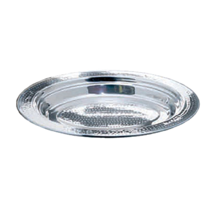 The Bon Chef 5288H Food Pan Full Oval 2-1/2 Qt. (80 Oz.) Capacity is a meticulously designed kitchen essential, perfect for both commercial and professional culinary settings. With a capacity of 2-1/2 quarts (80 oz.), this pan is ideal for serving and displaying a variety of dishes. Measuring 19 inches in length, 11-13/16 inches in width, and 2 inches in height, it provides ample space for food presentation while maintaining a sleek profile. The pan is crafted from high-quality stainless steel, ensuring durability and resistance to corrosion, which is essential for rigorous kitchen environments. Its plain design is complemented by a hammered finish, adding an aesthetic appeal that enhances the presentation of food in buffets or catered events. The pan's construction adheres to NSF and UL standards, signifying its compliance with strict health and safety guidelines, making it a reliable choice for foodservice professionals. This versatility and compliance make it suitable for various market segments within the food industry, including catering services, restaurants, and hospitality venues. The Bon Chef 5288H Food Pan combines functionality with style, making it a valuable addition to any food service operation looking to maintain high standards of food presentation and safety.