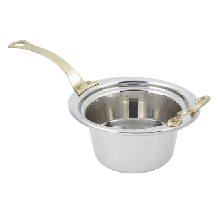 The Bon Chef 5350HL Casserole/Steamtable Dish is a versatile piece designed to meet the dynamic needs of various food service environments. With a 2-quart (64-ounce) capacity, this dish is ideal for both small and medium-sized servings, offering practical versatility in culinary presentations. Its dimensions of 10 inches by 9 inches by 4-3/4 inches perfectly balance space efficiency and serving capability, making it suitable for both catering and restaurant settings. Crafted from high-quality stainless steel, this dish boasts exceptional durability and a modern aesthetic that complements any tabletop. The inclusion of a long handle enhances safety and ease of handling, ensuring a reliable grip during transport and serving. The Bolero design on the rim adds a touch of elegance and refinement, making it a standout piece in any food presentation. Certified by NSF and UL, this casserole/steamtable dish meets rigorous standards for safety and quality, offering peace of mind in commercial kitchen operations. The Bon Chef 5350HL provides a unique blend of practical functionality and sleek design, making it a valuable asset for food service professionals seeking reliability and sophistication in their serviceware. This dish is an exemplary choice for those operating in the hospitality and catering industries.