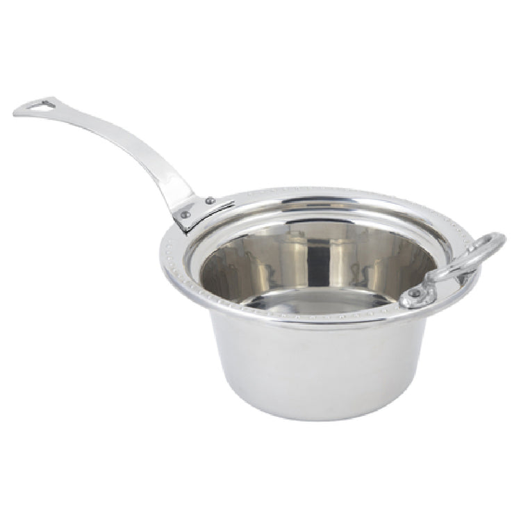 The Bon Chef 5350HLSS Casserole/Steamtable Dish is a versatile kitchen essential, boasting a 2 qt. (64 oz.) capacity ideally suited for both professional and home kitchens. With dimensions of 10 inches x 9 inches x 4-3/4 inches, this dish offers ample space for a variety of culinary creations. Its unique design features a long stainless steel handle, enhancing ease of transport and handling, making it an excellent choice for steamtable service or casserole preparation. The Bolero design on the rim adds a touch of style, while its stainless steel construction ensures durability and resistance to corrosion, providing long-lasting performance. The dish is NSF certified, reflecting its adherence to strict standards for public health protection, and UL listed, signifying compliance with rigorous safety standards. These certifications make it a trustworthy option for food service industries, such as catering and hospitality, where reliability and safety are paramount. This dish not only supports efficient meal service but also complements the aesthetic quality of any kitchen setting, highlighting Bon Chef's commitment to blending functionality with elegance. Whether used for steaming, baking, or serving, the Bon Chef 5350HLSS delivers exceptional quality and versatility.