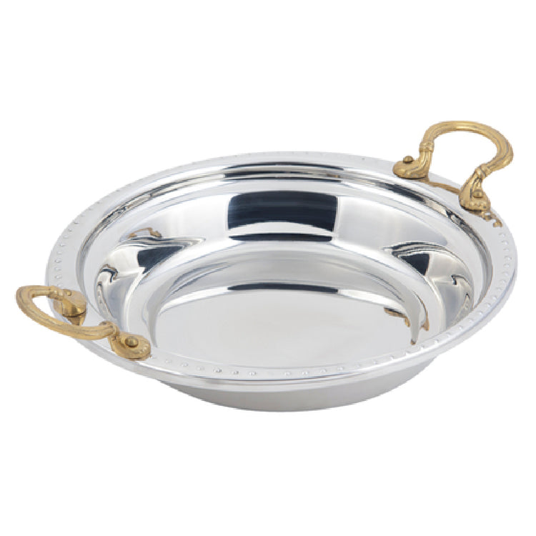 The Bon Chef 5355HR Casserole/Steamtable Dish is a versatile and durable kitchen essential, featuring a substantial 2-1/2 quart (80-ounce) capacity, ideal for a variety of food service applications. Its dimensions are meticulously designed, measuring 13 inches by 12-1/4 inches by 2-5/8 inches, ensuring ample space for both preparation and presentation. Equipped with round handles, this dish provides a comfortable and secure grip, enhancing ease of use in busy kitchen environments. The distinctive Bolero design on the rim adds an elegant touch, making it suitable for both back-of-house preparation and front-of-house display. The vapor lock shoulder is a standout feature, effectively retaining heat and moisture, thus maintaining optimal food quality over extended periods. Constructed from high-quality stainless steel, it offers exceptional durability and resistance to rust and corrosion, promising a long lifespan. The Bon Chef 5355HR is NSF and UL certified, underscoring its compliance with rigorous health, safety, and environmental standards. This casserole/steamtable dish is an excellent choice for professional kitchens, catering services, and buffet settings, where precision, durability, and aesthetics are highly valued. Its robust construction and thoughtful design make it an indispensable tool for chefs and caterers alike.