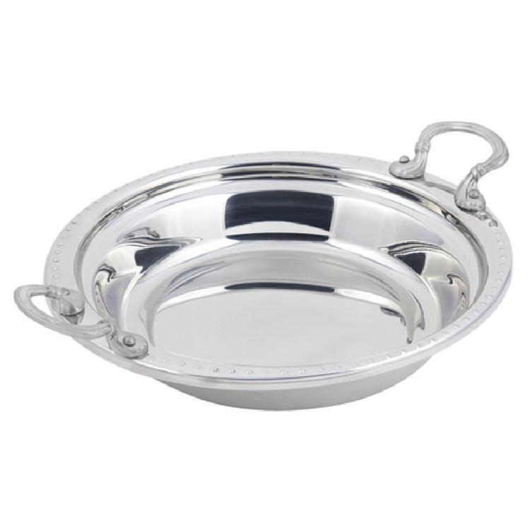 The Bon Chef 5355HRSS Casserole/Steamtable Dish is a versatile and high-quality kitchen essential, boasting a substantial 2-1/2 qt. (80 oz.) capacity. Measuring 13 inches by 12-1/4 inches by 2-5/8 inches, this dish is perfectly suited for both residential and commercial culinary environments. Its robust construction is highlighted by round stainless steel handles, ensuring easy handling and durability. The Bolero on the rim not only adds a touch of elegance but also contributes to the dish's structural integrity. One of its standout features is the vapor lock shoulder, designed to maintain an optimal cooking environment by effectively sealing in steam and heat. Crafted from premium stainless steel, this dish is both NSF and UL certified, guaranteeing compliance with rigorous health and safety standards. The Bon Chef 5355HRSS is an excellent choice for chefs and food service professionals seeking a reliable and efficient cookware solution. Its combination of functionality and aesthetic appeal makes it suitable for a variety of contexts, from buffet steam tables to home kitchens, offering unmatched versatility and performance.