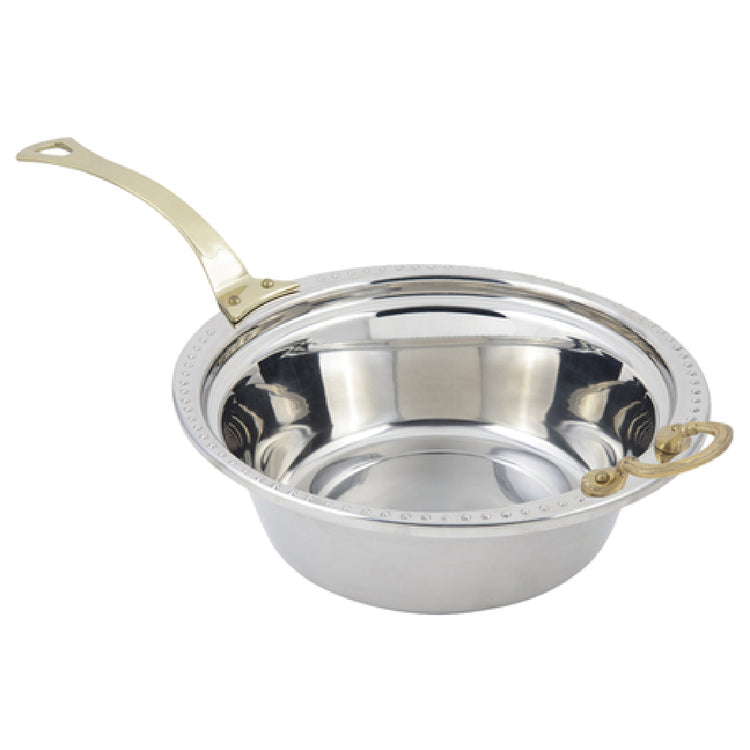 The Bon Chef 5356HL Casserole/Steamtable Dish is a versatile kitchen essential, boasting a generous 4 qt. (128 oz.) capacity, perfect for various cooking and serving needs. Measuring 13" x 12-1/4" x 4", this dish is designed with a long handle, providing ease of use and enhanced handling. The "Bolero" design on the rim adds a touch of elegance to its robust construction. Made from high-quality stainless steel, the dish ensures durability and longevity, making it suitable for both commercial and residential use. It is NSF certified, highlighting its compliance with public health and safety standards, and UL listed, ensuring it meets rigorous performance and safety criteria. This dish is an ideal choice for catering businesses, restaurants, and home kitchens, offering a reliable solution for food preparation and presentation. Its construction and design cater to the demands of the food service industry, where durability and functionality are paramount. The Bon Chef 5356HL Casserole/Steamtable Dish presents a blend of aesthetic appeal and practicality, making it a valuable addition to any culinary setting.