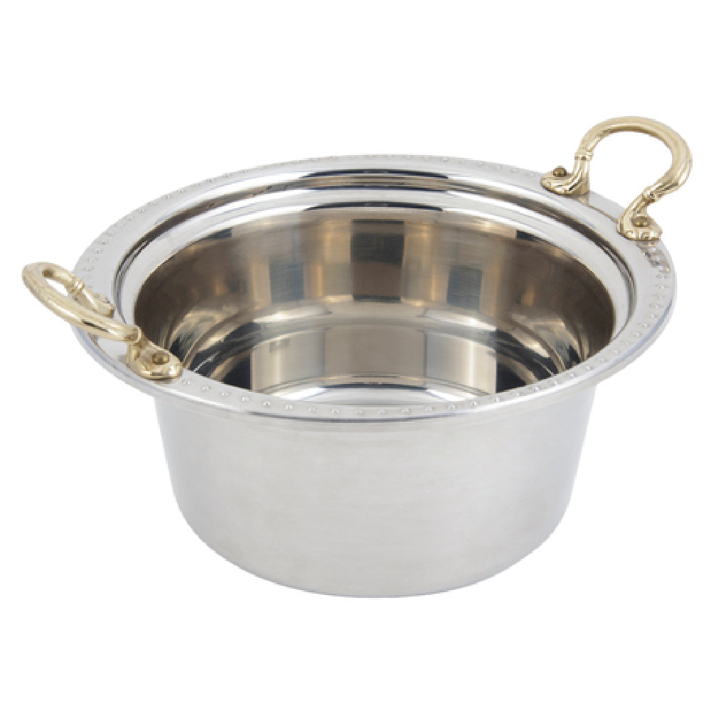 The Bon Chef 5360HR Casserole/Steamtable Dish is an expertly crafted kitchen essential designed for both residential and commercial use, with a generous 5-quart (160-ounce) capacity. Measuring 12-9/16 inches in length, 11-1/2 inches in width, and 5-1/2 inches in height, this versatile dish is perfect for a variety of culinary applications, from baking casseroles to serving at steam tables. It features distinctive round handles that provide a secure grip, ensuring ease of transport and handling even when full. The rim is elegantly accented with Bolero, adding a touch of sophistication to its design. Constructed from high-quality stainless steel, this dish offers exceptional durability and resistance to wear and corrosion, making it a long-lasting addition to any kitchen. Certified by NSF and UL, it meets rigorous public health and safety standards, ensuring that it performs safely and efficiently in professional food service environments. The Bon Chef 5360HR Casserole/Steamtable Dish is ideal for chefs and caterers seeking a reliable, high-capacity dish that combines functionality with aesthetic appeal, making it a valuable tool for a wide range of culinary professionals and enthusiasts alike.