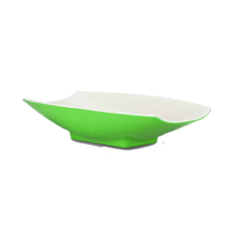 The Bon Chef 53700-2TONELIME Serving Bowl is a remarkable piece of tableware designed for versatility and style, making it a valuable addition to various dining settings. With a capacity of 4 oz., this serving bowl is ideally suited for portion-controlled servings, enhancing presentation in both casual and formal dining environments. Measuring 6 inches in length, 3-1/2 inches in width, and 1-1/2 inches in height, its compact and curved rectangular shape offers a modern aesthetic while ensuring efficient use of space on dining tables or buffets. Crafted from durable melamine, the bowl combines the look of upscale pottery with the practicality of shatter-resistant construction, making it perfect for high-traffic establishments such as restaurants, hotels, and catering services. The unique two-tone lime and white design adds a pop of color, appealing to contemporary dining themes and enhancing food presentation. This serving bowl is not only a functional piece but also a styling element that can cater to diverse market segments, from gourmet chefs to casual diners, by providing both durability and an eye-catching design that complements a wide array of culinary creations.