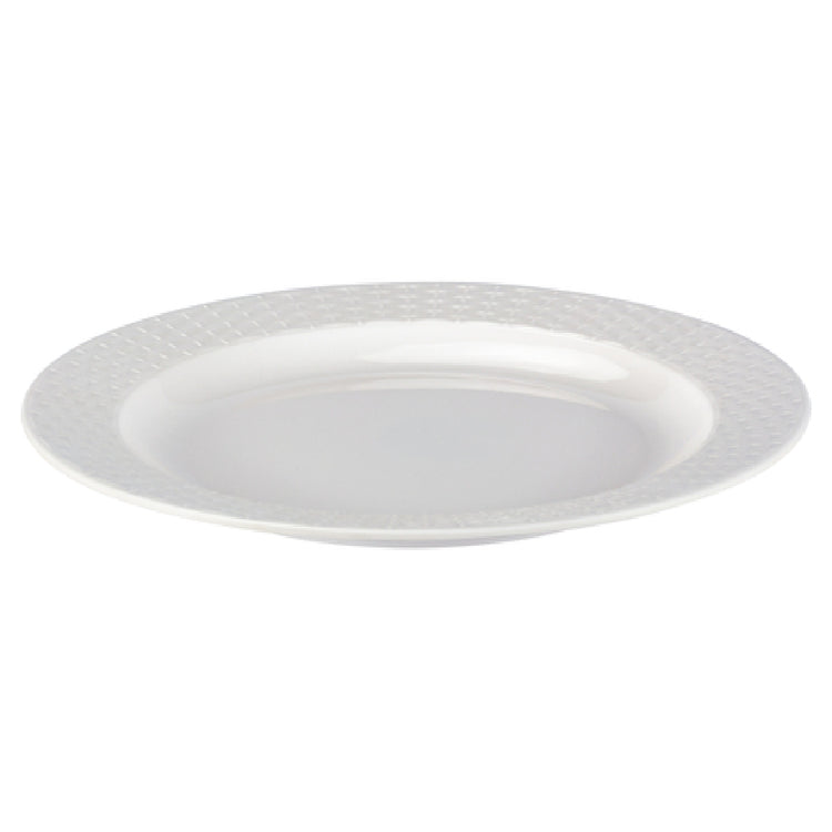 The Bon Chef 53900WHITE Buffet Plate is a meticulously designed dinnerware item featuring a 12-1/4" diameter that caters to varied culinary presentations. Crafted from durable melamine, this round plate combines the aesthetic appeal of a high gloss white finish with the sophisticated touch of a woven pattern border, making it a versatile choice for both casual and formal dining settings. The robust construction ensures resistance to breakage, providing a long-lasting solution for busy catering environments or buffet-style dining. The high gloss finish not only enhances visual appeal but also allows for easy cleaning, maintaining its pristine look over time. This plate is particularly advantageous for the hospitality industry, including hotels, restaurants, and event planners, where both aesthetics and durability are paramount. Its classic round shape is ideal for showcasing a wide range of dishes, from appetizers to desserts, making it a valuable addition to any food service operation seeking to elevate their dining experience. The Bon Chef 53900WHITE Buffet Plate represents a perfect blend of style and practicality, meeting the demands of various market segments within the food service industry by delivering a product that is as functional as it is elegant.
