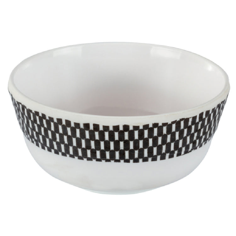 The Bon Chef 53929WHITE-BLK Soup Bowl is a meticulously crafted serving piece with a capacity of 10 ounces, ideal for portion-controlled servings in both casual and fine dining environments. Measuring 4-3/8 inches in diameter and 2 inches in height, this round bowl offers a compact yet stylish solution for serving soups, stews, and other hot dishes. The bowl features a high gloss center that enhances the presentation of your culinary creations, making it a standout choice for establishments that prioritize visual appeal. Constructed from durable melamine, the Bon Chef 53929WHITE-BLK Soup Bowl is designed for long-lasting use, providing a shatterproof alternative to traditional ceramic or porcelain dishware. The matte black and white checker border adds a touch of contemporary elegance, making it suitable for a variety of table settings and décor themes. This versatile soup bowl is perfect for diverse segment markets, including restaurants, cafes, catering services, and hospitality venues that demand both functionality and aesthetic appeal. The combination of its practical dimensions, durable material, and eye-catching design ensures that the Bon Chef 53929WHITE-BLK Soup Bowl meets the needs of any food service operation seeking reliable and attractive dinnerware solutions.