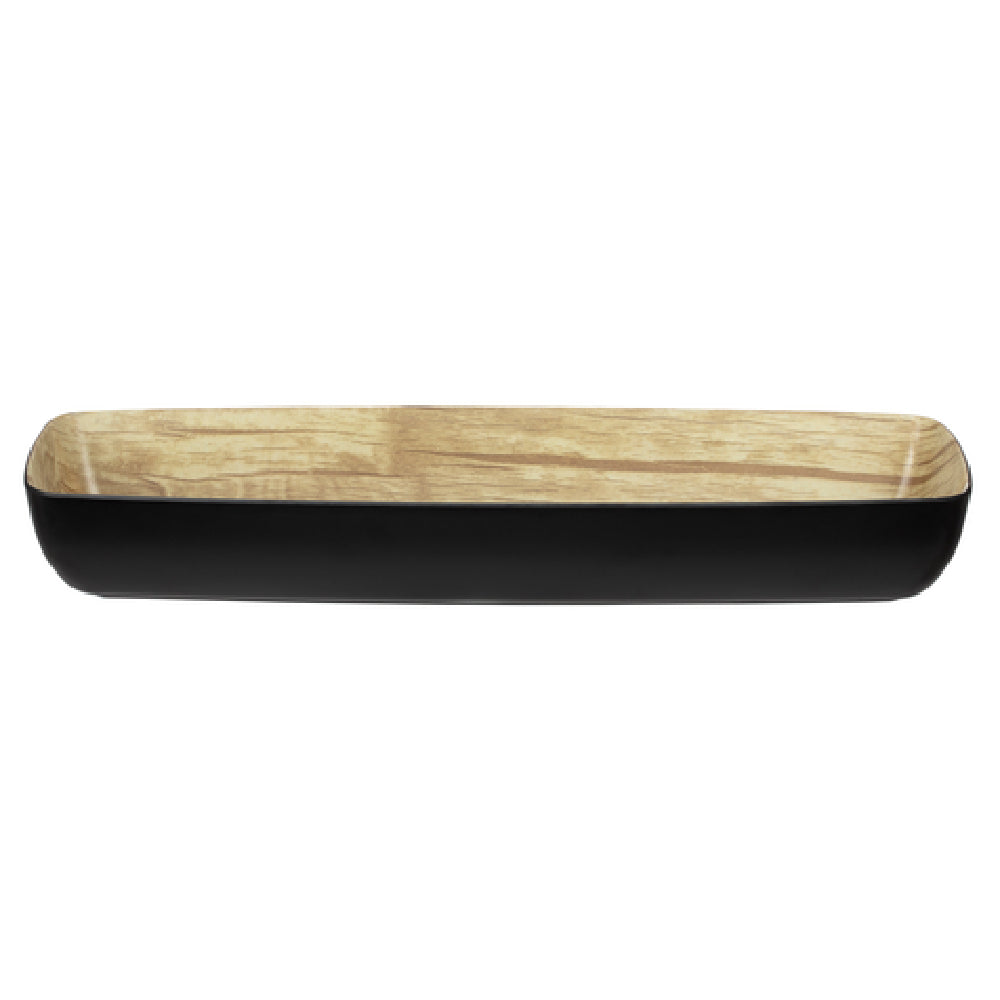 The Bon Chef 53980BLK-BAMBOO Serving Bowl is a versatile and stylish solution for various serving needs, with a substantial capacity of 128 oz. and dimensions of 20-3/4 inches by 6-3/4 inches by 3 inches. This rectangular serving bowl showcases a unique combination of materials and design, featuring a matte black exterior crafted from durable melamine, offering both resilience and a sleek, modern aesthetic. The interior is lined with bamboo, providing a natural and elegant contrast to the striking black exterior, making it suitable for diverse environments from fine dining establishments to casual buffet settings. The Bon Chef 53980BLK-BAMBOO Serving Bowl is all-purpose, designed to seamlessly blend into various culinary presentations while offering the practicality and robustness necessary for high-volume food service operations. Its material composition ensures it is lightweight yet sturdy, making it an excellent choice for catering services, hotel buffets, and restaurant displays. The thoughtful design and functional capacity of the Bon Chef 53980BLK-BAMBOO Serving Bowl highlight its utility and adaptability, catering to the needs of professionals seeking a combination of form and function in their serving ware.