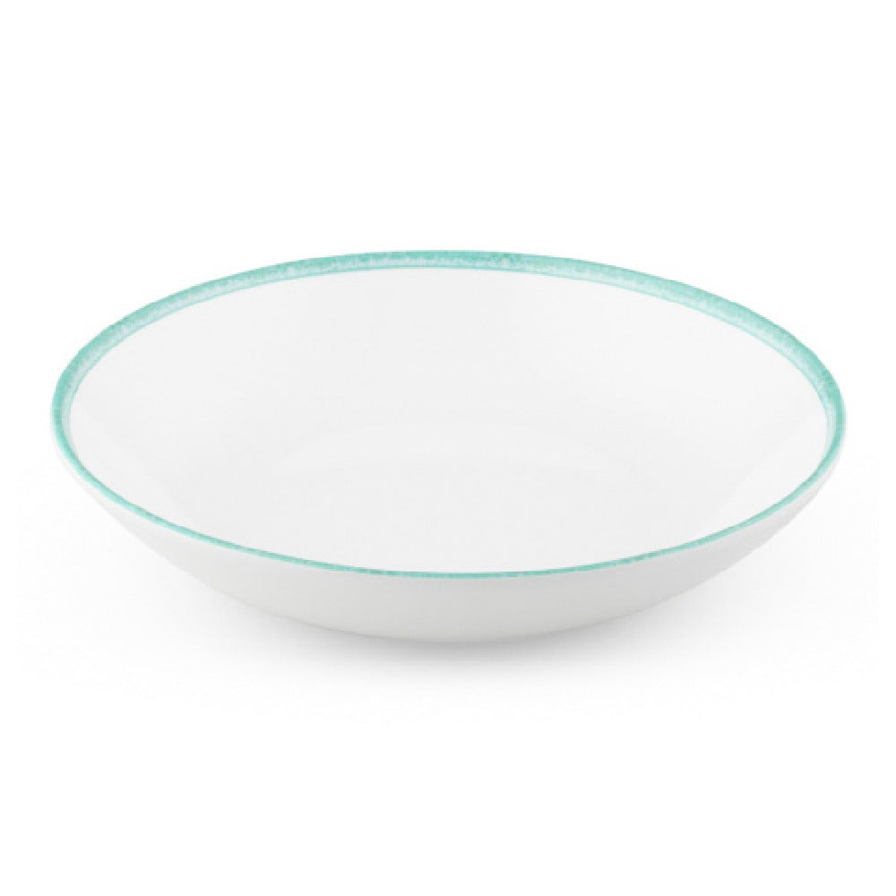 Bon Chef, 53988-A, Tidal Coupe Bowl, 27 oz., 8.5" dia., x 1.5" H, round, melamine, dishwasher safe, white, aqua decal