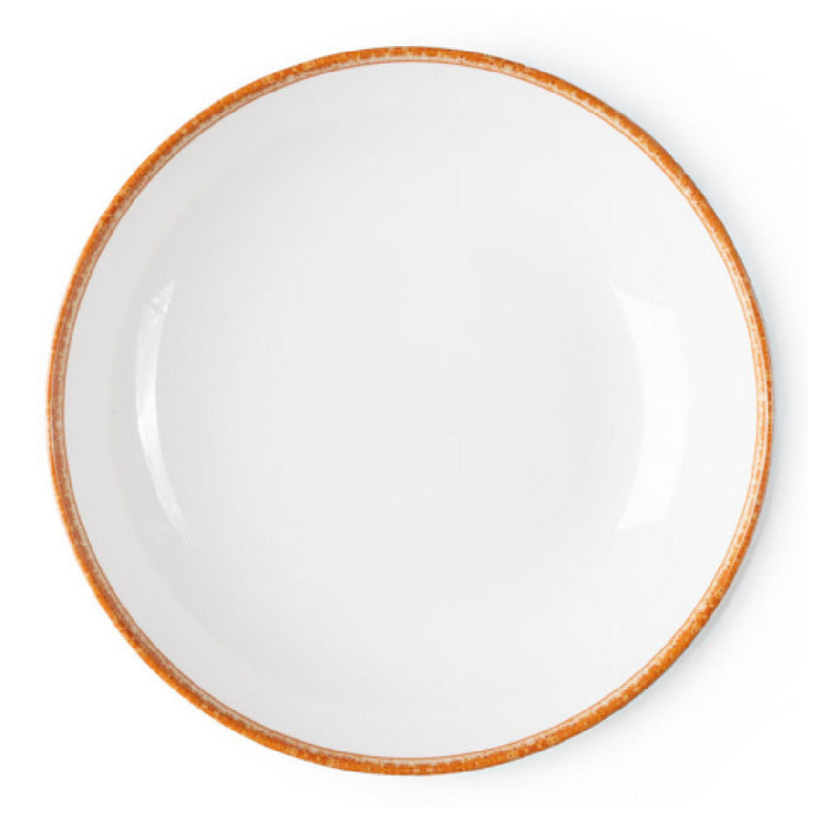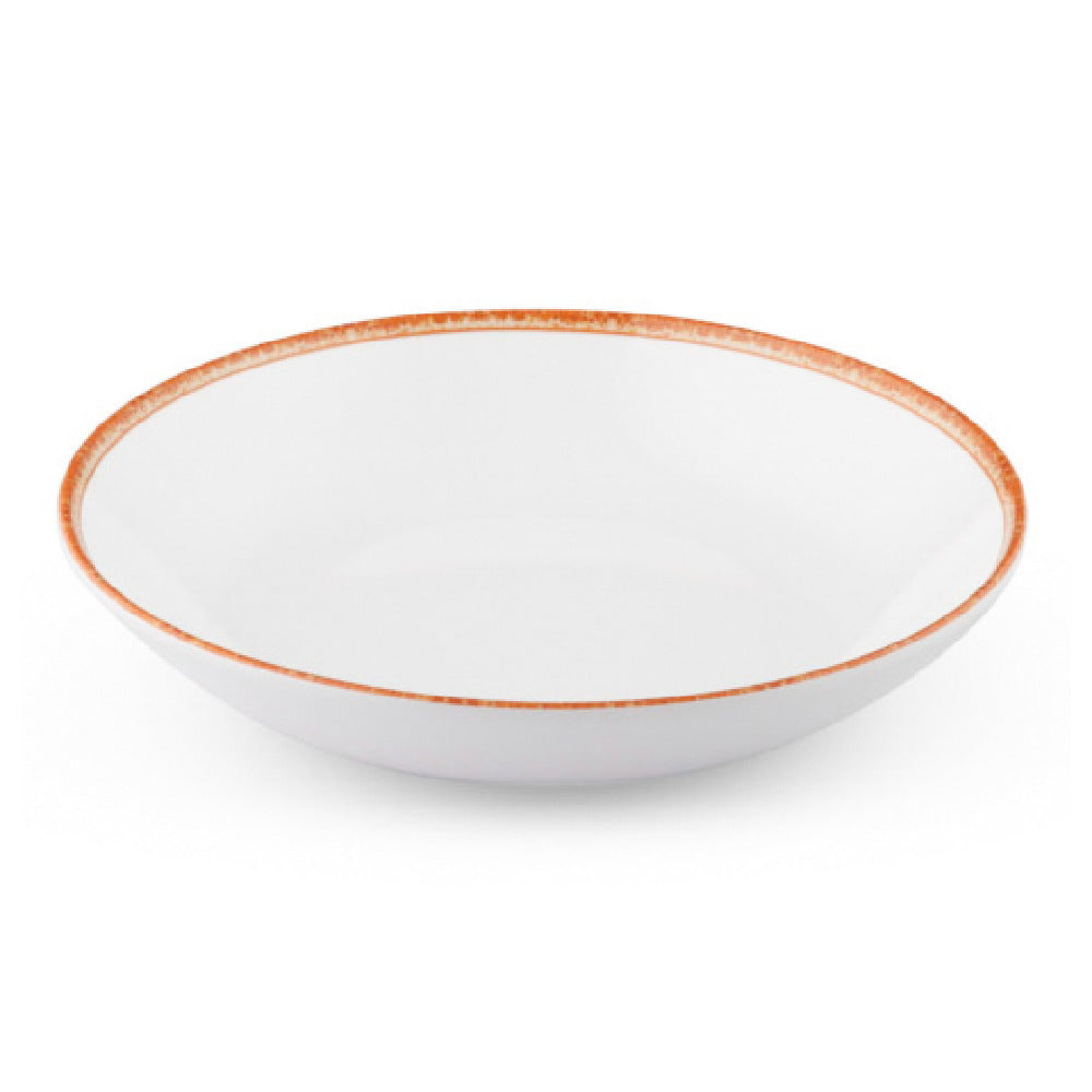 Bon Chef, 53988-O, Tidal Coupe Bowl, 27 oz., 8.5" dia., x 1.5" H, round, melamine, dishwasher safe, white, orange decal