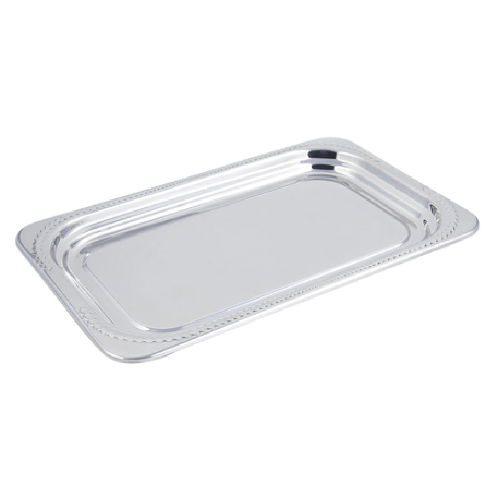 The Bon Chef 5407 Food Pan is a full-size, rectangular pan with a capacity of 4-1/2 quarts (144 ounces), designed to meet the diverse needs of the food service industry. Measuring 21-1/2 inches by 13-1/2 inches by 1-1/4 inches, this pan is ideally suited for large-scale cooking and serving applications. Its Laurel design adds an element of elegance to its robust functionality, making it a suitable choice for both presentation and practicality. Constructed from high-quality stainless steel, the Bon Chef 5407 is built to withstand the rigorous demands of commercial kitchens while ensuring ease of cleaning and maintenance. This product is NSF and UL certified, demonstrating its adherence to stringent safety and sanitation standards, which are essential in professional catering and food service environments. The Bon Chef 5407 Food Pan's durable construction and sophisticated design make it an exceptional choice for establishments ranging from gourmet restaurants to institutional food service operations, providing a reliable solution for chefs and professionals who prioritize both aesthetics and performance.