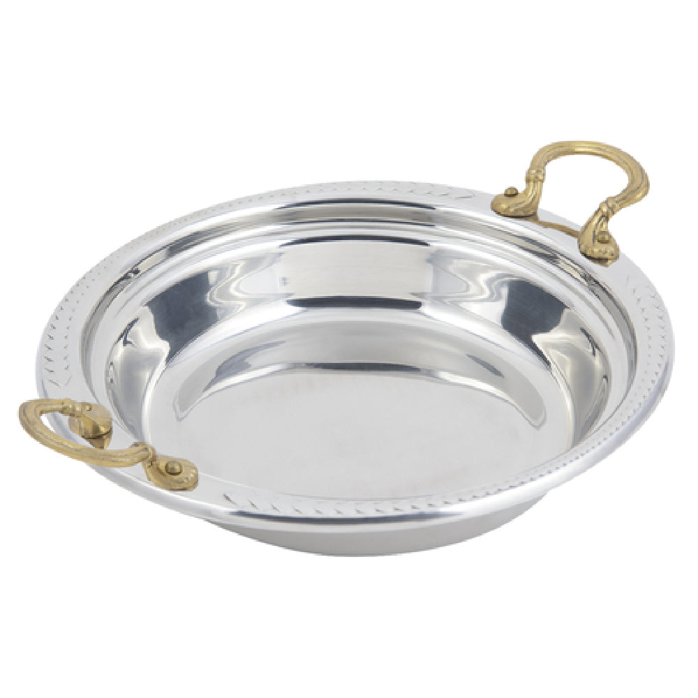 The Bon Chef 5455HR Casserole/Steamtable Dish is an expertly crafted culinary essential, offering a substantial capacity of 2-1/2 quarts (80 ounces) to accommodate diverse cooking and serving needs. Measuring 13 inches by 12-1/4 inches by 2-5/8 inches, this dish is adeptly sized for both personal and professional settings. Constructed from durable stainless steel, it promises longevity and consistent performance, while its vapor lock shoulder enhances moisture retention and heat distribution, crucial for precise cooking. The inclusion of round handles ensures easy maneuverability, adding convenience to its robust design. Adorned with Laurel on the rim, it combines elegance with functionality, making it suitable for upscale presentations. This versatile piece meets NSF and UL certifications, reflecting its adherence to rigorous safety and sanitation standards, making it a reliable choice for restaurants, catering services, and hospitality venues. Whether used for casseroles, steam table setups, or buffet presentations, the Bon Chef 5455HR seamlessly blends aesthetic appeal with practical utility, serving as a versatile asset to any kitchen environment seeking both style and superior performance.