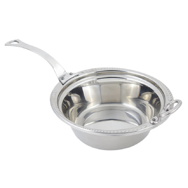 The Bon Chef 5456HLSS Casserole/Steamtable Dish is engineered for versatility and durability with its 4 qt. (128 oz.) capacity, making it an ideal choice for commercial kitchens and catering events. Measuring 13 inches by 12-1/4 inches by 4 inches, this dish is designed to accommodate a variety of recipes and presentations. Constructed from high-quality stainless steel, it ensures longevity and resistance to rust and corrosion, essential for busy food service environments. The dish features a long stainless steel handle, providing safe and easy transport from the kitchen to the serving area. This casserole dish is adorned with a laurel design on the rim, adding a touch of elegance to its practical design. Certified by both NSF and UL, it meets stringent public health and safety standards, ensuring it is suitable for professional use. The Bon Chef 5456HLSS Casserole/Steamtable Dish combines functionality with stylish design, serving as a reliable asset for restaurants, hotels, and catering businesses seeking quality cookware that meets professional requirements. Whether used in a steamtable setup or for direct table presentation, this versatile dish is tailored to enhance culinary operations across a variety of food service settings.