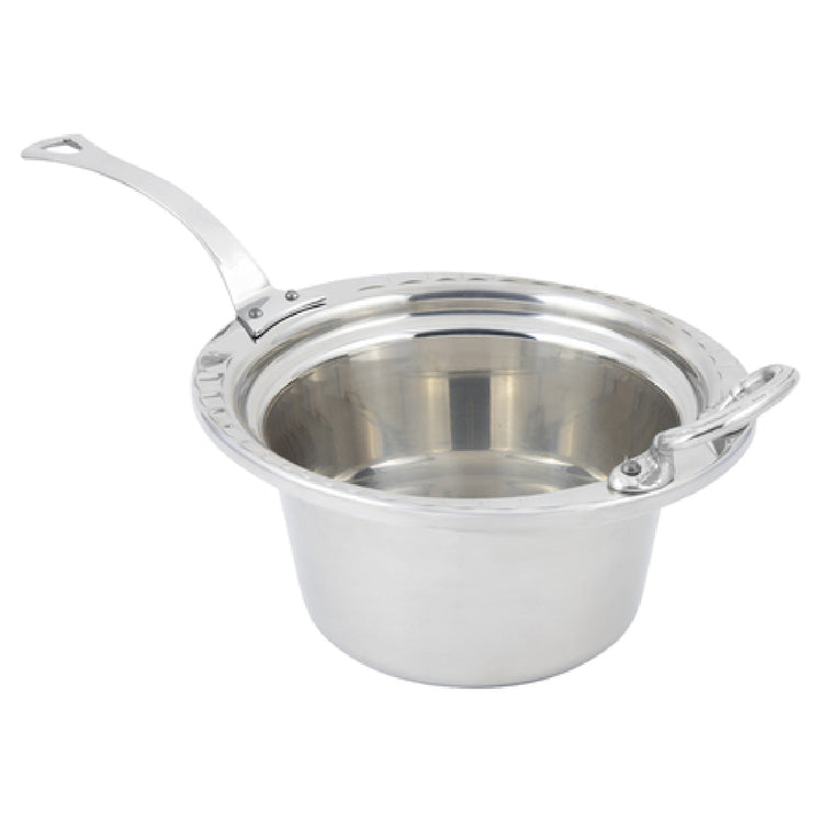 The Bon Chef 5650HLSS Casserole/Steamtable Dish is a versatile culinary tool designed to meet the diverse needs of the food service industry. With a 2 qt. (64 oz.) capacity, it accommodates a substantial volume, making it suitable for a variety of dishes and serving settings. The dish measures 10" x 9" x 4-3/4", offering ample space for both preparation and presentation. Constructed entirely of stainless steel, it boasts remarkable durability and resistance to corrosion, ensuring a long-lasting performance in demanding environments. The inclusion of a long stainless steel handle enhances its ergonomic design, allowing for easy handling and transport. Aesthetically, its arches on the rim provide an elegant touch that complements its functionality. This casserole/steamtable dish meets stringent NSF and UL standards, highlighting its commitment to safety and sanitation. Whether used in a bustling commercial kitchen or a sophisticated buffet presentation, the Bon Chef 5650HLSS is engineered to deliver exceptional performance and style, making it a valuable asset for professional chefs and food service establishments.