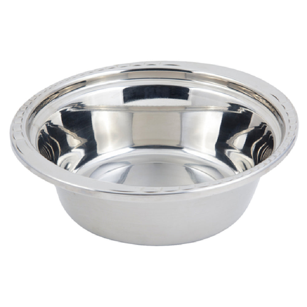 The Bon Chef 5656 Casserole/Steamtable Dish is a versatile culinary instrument designed to suit a variety of professional food service environments. With a substantial 4 qt. (128 oz.) capacity, this dish is perfect for accommodating large servings, ideal for buffets, catering events, or busy restaurant kitchens. Measuring 13 inches by 12-1/4 inches by 4 inches, it provides ample space while maintaining a manageable size for ease of handling. Constructed from durable stainless steel, it offers excellent resistance to corrosion and staining, ensuring longevity and ease of maintenance. The unique arches on the rim not only add an element of sophisticated design but also provide structural integrity and ease of use. Certified by both NSF and UL, this dish meets high standards of safety and sanitation, making it a trusted choice for food service professionals prioritizing health and reliability. The Bon Chef 5656 dish is especially valuable for establishments that require equipment capable of transitioning seamlessly from kitchen preparation to elegant presentation on steam tables or dining settings, delivering both functionality and style in one comprehensive package.