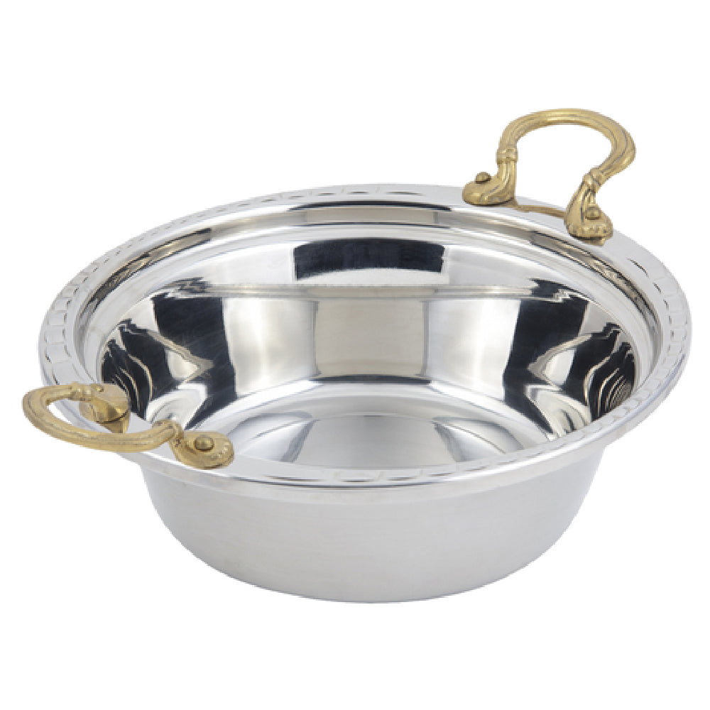 Bon Chef 5656HR Casserole/Steamtable Dish is a meticulously crafted piece of professional cookware, blending both functionality and elegance. With a capacity of 4 quarts (128 ounces), this dish is perfectly sized for catering to medium-scale gatherings or food service operations that require precision in portioning. Its dimensions - 13 inches in length, 12-1/4 inches in width, and 4 inches in height - offer ample space for both cooking and serving, making it a versatile choice for various culinary applications. The stainless steel construction ensures durability and resistance to corrosion, enhancing its longevity in demanding kitchen environments. Designed with round handles, this dish provides ease of handling and transportation, even when full. The unique arches on the rim add a touch of sophistication, highlighting the dish's aesthetic appeal alongside its practical features. Certified by NSF and UL, it meets rigorous safety and quality standards, attesting to its reliability and performance in professional settings. This casserole/steamtable dish is an ideal addition for chefs and caterers seeking a blend of style, durability, and functionality in their cookware repertoire, aligning with the diverse needs of the hospitality and food service industries.