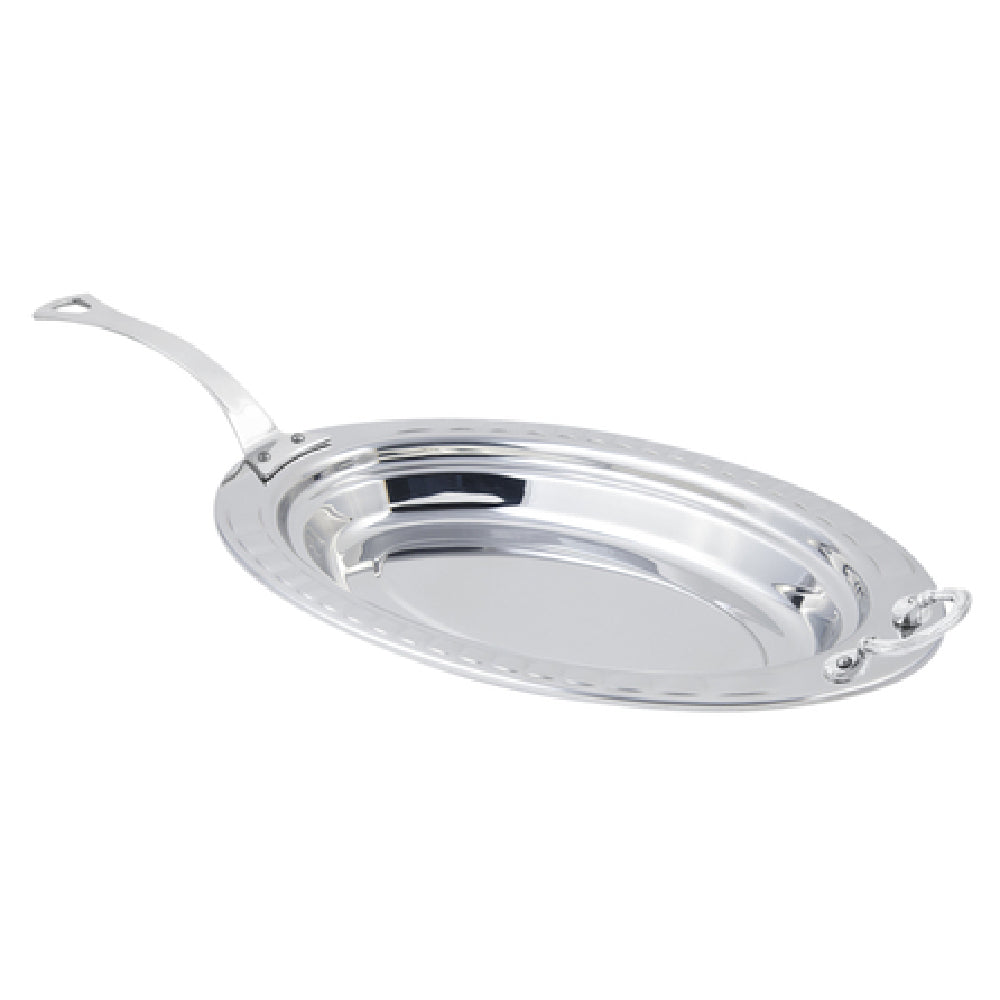 The Bon Chef 5688HLSS Food Pan Full Oval 2-1/2 Qt. (80 Oz.) Capacity is a meticulously designed kitchen essential that caters to diverse culinary environments, such as buffet settings, catering services, and restaurant kitchens. With a full oval shape measuring 19 inches in length, 11-13/16 inches in width, and 2 inches in depth, this food pan is optimized for both presentation and functionality. Constructed from premium stainless steel, it ensures durability and resistance to corrosion, making it a reliable choice for long-term use. The addition of a long stainless steel handle enhances ease of handling and maneuverability, especially in high-paced kitchen scenarios. The Arches design not only adds an aesthetic appeal but also aligns with modern food service trends. Certified by NSF and UL, the Bon Chef 5688HLSS Food Pan guarantees compliance with stringent health and safety standards, assuring professionals of its quality and dependability. With an 80-ounce capacity, it is suitable for accommodating a substantial volume of food, supporting efficient serving and storage solutions. This food pan is a versatile tool that combines practical features with elegant design, ideal for elevating the food presentation and operational efficiency across various segments within the food service industry.