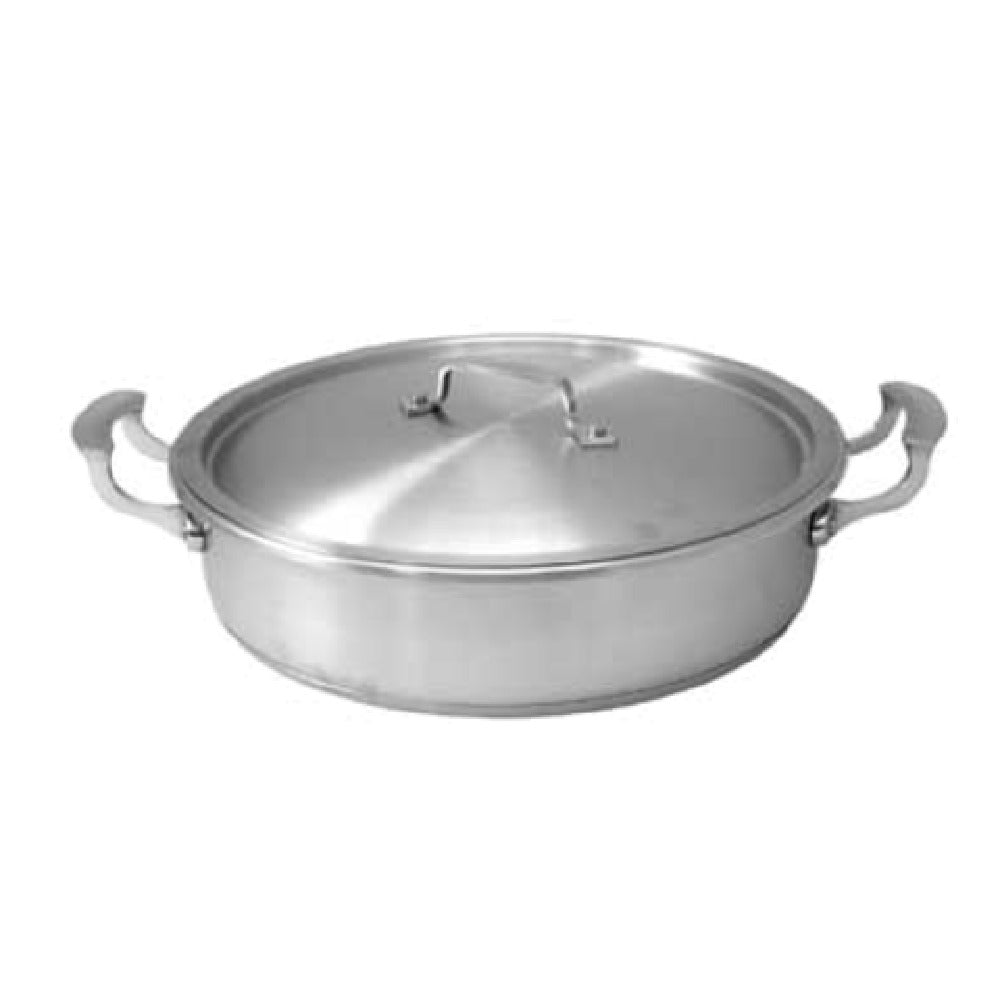 The Bon Chef 60030 Cucina Pot is a versatile kitchen staple with a 6-quart capacity, ideal for both home cooks and professional chefs. Measuring 12-3/8 inches in diameter and 3 inches in height, this pot provides ample space for a variety of cooking needs. Its round design is complemented by two 2-inch round handles, ensuring a secure and comfortable grip during use. The inclusion of a cover adds to its practicality, allowing for efficient temperature retention and moisture control. A key feature of the Bon Chef Cucina Pot is its induction bottom, which offers enhanced heat conductivity and energy efficiency, making it suitable for modern kitchens utilizing induction cooking technology. Crafted from high-quality stainless steel, this pot promises durability and resistance to rust and corrosion, ensuring it withstands rigorous use in busy kitchen environments. The Bon Chef 60030 Cucina Pot's blend of size, functionality, and robust construction makes it a valuable addition to any culinary setting, catering to a range of cooking requirements from simmering sauces to preparing substantial stews. Its thoughtful design and technical attributes make it an essential tool for achieving precise and consistent cooking results across various culinary applications.