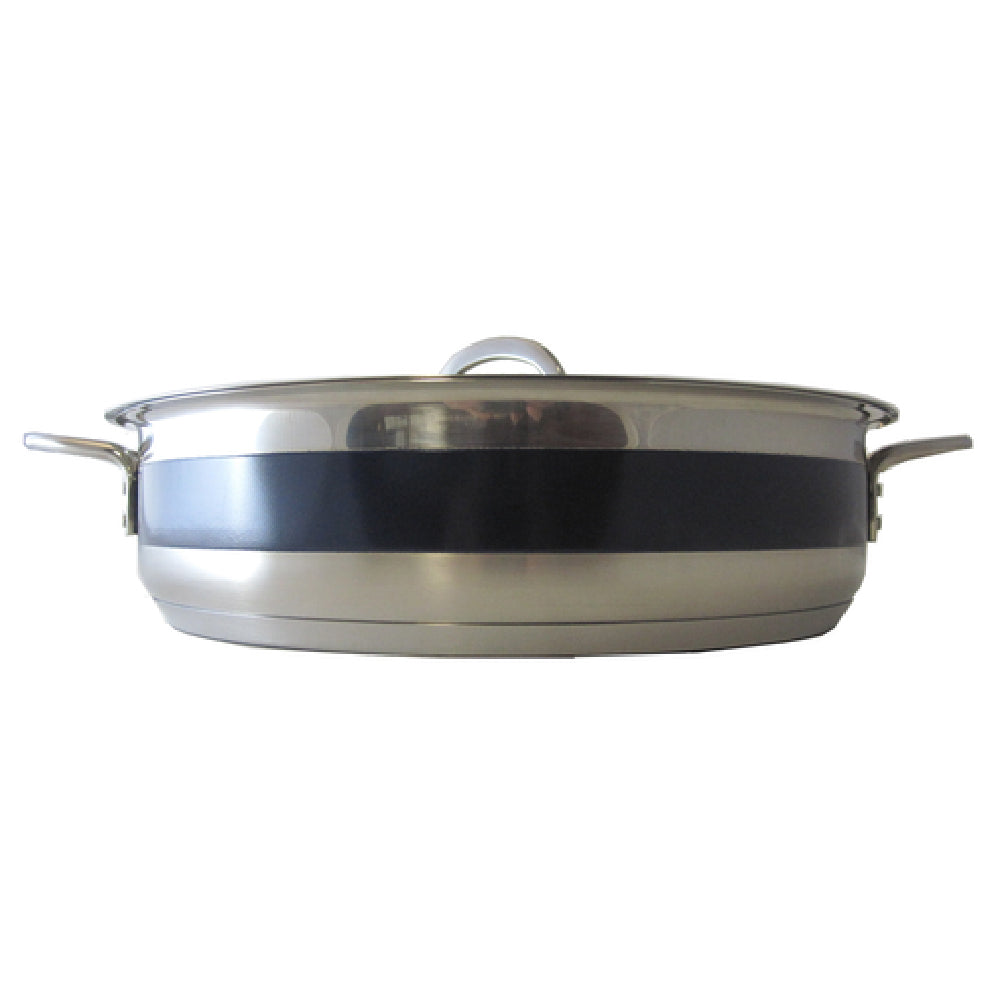 The Bon Chef 60030CFCOBALTBLUE Classic Country French Pot 6 Qt. is a versatile and stylish piece of cookware, measuring 12-3/8" in diameter and 3" in height. This round pot is constructed with a durable stainless steel body, enhanced by a cobalt blue finish that adds a touch of elegance to any kitchen setting. It comes with a cover and convenient handles, making it practical for both cooking and serving. The induction bottom is a standout feature, allowing for efficient heat distribution and compatibility with induction cooktops, catering to the needs of modern culinary professionals and home cooks alike. This pot is NSF certified, ensuring it meets rigorous public health and safety standards, making it a reliable choice for commercial kitchens, restaurants, and catering services. Its 6-quart capacity provides ample space for preparing hearty dishes, suitable for small to medium-sized gatherings. The Bon Chef Classic Country French Pot embodies a blend of traditional design and modern functionality, making it a valuable addition to any kitchen that values both form and function.