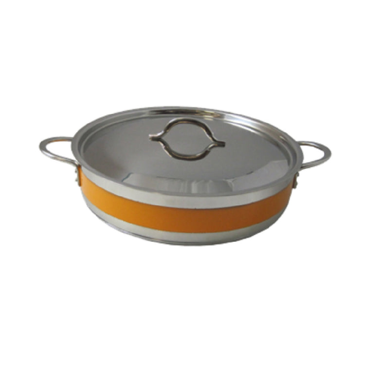 Bon Chef 60030CFORANGE Classic Country French Pot is a versatile 6-quart culinary essential, expertly crafted for both professional kitchens and home chefs. With a diameter of 12-3/8 inches and a height of 3 inches, this round pot is designed to facilitate even cooking and efficient heat distribution. The pot comes with a cover and is equipped with sturdy handles for safe and convenient handling. Its induction bottom enhances compatibility with modern cooktops, while the stainless steel construction ensures durability and longevity, capable of withstanding rigorous use. The striking orange finish not only adds a vibrant touch to any kitchen but also makes it easy to identify. Certified by NSF, this pot meets stringent health and safety standards, making it a reliable choice for food service environments. The Bon Chef 60030CFORANGE Classic Country French Pot combines functionality with style, catering to the needs of various market segments within the culinary industry, from upscale restaurants to casual dining establishments, and even for home cooking enthusiasts who value professional-grade kitchenware. This pot is specially designed to integrate seamlessly into diverse cooking settings, making it a practical yet elegant addition to any cookware collection.
