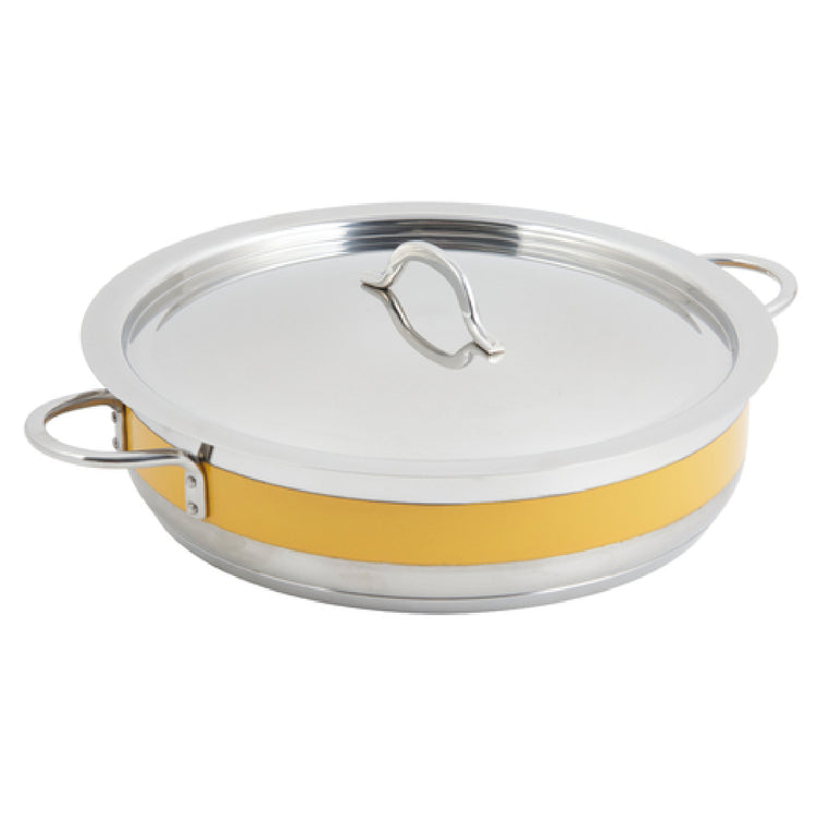 The Bon Chef 60030CFYELLOW Classic Country French Pot is a versatile and elegantly designed cookware piece perfect for various culinary applications. With a generous capacity of 6 quarts, this round pot measures 12-3/8 inches in diameter and 3 inches in height, allowing ample space for simmering soups, stews, and other delicious creations. Crafted from durable stainless steel, this pot is built to withstand rigorous use in both professional and home kitchens. Its vibrant yellow exterior adds a splash of color, making it a visually appealing addition to any cookware collection. The induction bottom ensures compatibility with induction cooktops, providing efficient and even heat distribution for optimal cooking performance. The pot comes with a matching cover, helping to retain heat and moisture during cooking. Equipped with sturdy handles, it offers a secure grip for safe handling. Certified by NSF, the Bon Chef 60030CFYELLOW Classic Country French Pot meets high standards for public health protection, making it a reliable choice for establishments seeking quality cookware. Its combination of practicality and aesthetic appeal makes this pot a valuable asset in diverse kitchen environments, from commercial kitchens to home settings where quality and style are paramount.