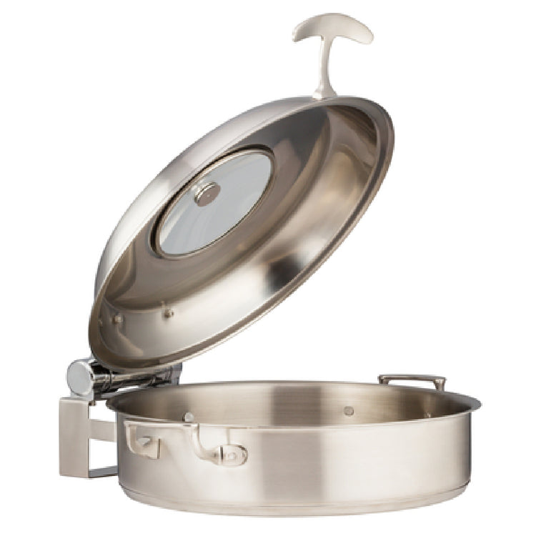 The Bon Chef 60030SHL Cucina Pot is a premium 6-quart culinary vessel, meticulously crafted to cater to diverse cooking needs across various market segments within the culinary industry. This round pot, with dimensions of 12-3/8 inches in diameter and 3 inches in height, is designed for both functionality and elegance. It features a slow down hinged glass lid, which provides a clear view of the cooking process while ensuring a gentle closure to preserve the integrity of the dish. The pot is equipped with an induction bottom, offering compatibility with modern induction cooktops and enhancing energy efficiency through rapid and even heating. Crafted from high-grade stainless steel, this Cucina Pot not only exhibits exceptional durability but also resists discoloration and maintains its pristine appearance over time. The convenient handles ensure a secure grip, facilitating safe and effortless maneuverability in any culinary setting. Ideal for professional kitchens, home gourmets, and catering services, the Bon Chef 60030SHL Cucina Pot embodies a blend of aesthetic appeal and technical precision, making it a versatile addition to the culinary toolkit of chefs who value quality and performance.