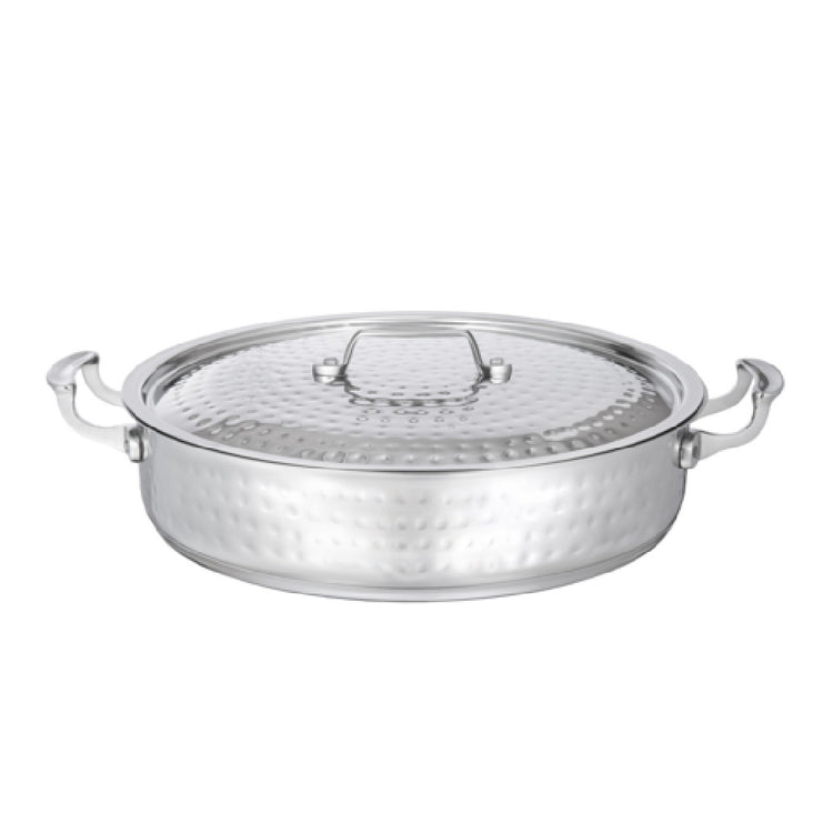 The Bon Chef 60032HFCOVER Cover/Lid Only is a meticulously crafted accessory designed specifically for the 9 Qt. Cucina Pot, model 60032HF. Boasting a diameter of 14-3/4 inches, this lid is constructed from high-quality stainless steel, ensuring durability and long-lasting performance in demanding kitchen environments. The elegant hammered finish not only enhances its aesthetic appeal but also adds a touch of sophistication to any culinary setting. This cover is a perfect fit for professional chefs and home cooks alike, offering seamless compatibility with the Cucina pot to maintain optimal cooking conditions. The Bon Chef 60032HFCOVER is tailored for those who appreciate fine craftsmanship and reliable kitchen tools, making it an essential component for restaurants, catering services, and gourmet cooking establishments. Its robust construction and precision engineering underscore its value in maintaining heat and ensuring uniform cooking, thus preserving the quality and flavor of dishes. As an indispensable kitchen accessory, the Bon Chef 60032HFCOVER is a testament to excellence in design and functionality, meeting the needs of diverse market segments within the culinary industry.