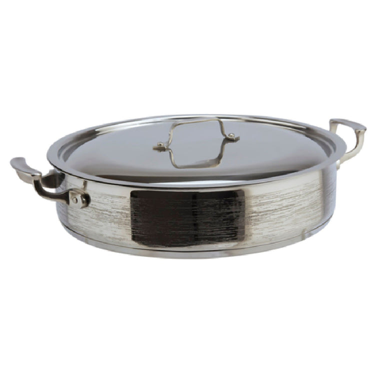 The Bon Chef 60032RAIN Cucina Pot 9 Qt. is a masterfully crafted piece of cookware designed for professional kitchens and passionate home chefs alike. With a substantial volume of 9 quarts, this pot is perfect for preparing large batches of soups, stews, and sauces. Measuring 14-3/4 inches in diameter and 3-5/8 inches in height, it provides ample cooking surface and depth for versatile culinary applications. The round shape enhances heat distribution, ensuring even cooking results. Constructed from durable stainless steel, the Cucina Pot features an induction bottom, making it compatible with induction cooktops for efficient energy transfer. The rain finish not only adds an elegant touch but also provides a unique texture that is resistant to scratches and wear, maintaining its sleek appearance over time. The pot comes complete with a cover, allowing for efficient heat retention and moisture preservation, essential for achieving rich, flavorful dishes. Designed with sturdy handles, it ensures safe and comfortable handling even when filled to capacity. This Cucina Pot is a valuable addition to any kitchen, combining practical functionality with sophisticated design, catering to both the commercial food service industry and discerning home cooks seeking professional-grade cookware.