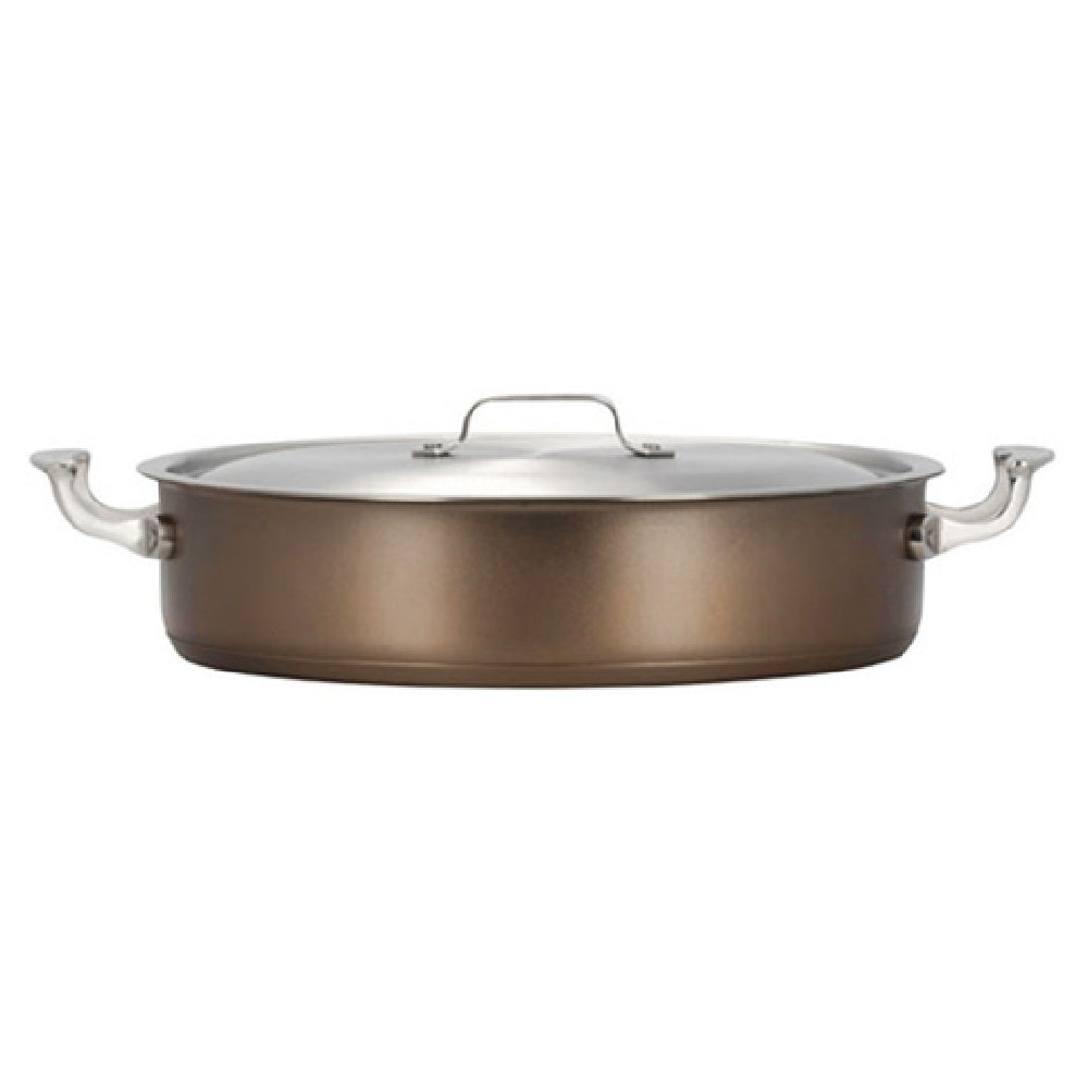 The Bon Chef 60032TAUPE HotStone Cucina Pot 9 Qt. is a versatile kitchen essential, meticulously crafted to meet the demands of both professional chefs and home cooking enthusiasts. With dimensions of 14-3/4 inches in diameter and 3-5/8 inches in height, this round pot offers a substantial 9-quart capacity, ideal for preparing large quantities of stews, soups, and sauces. Constructed from high-quality 18/8 stainless steel, it boasts durability and resistance to corrosion, ensuring long-lasting performance. The pot features an induction bottom, making it compatible with various cooking surfaces including induction cooktops, enhancing its versatility in modern kitchens. Its oven-safe design allows for cooking at temperatures up to 375°F, providing the flexibility to transition from stovetop to oven with ease. Equipped with two 2-inch round riveted handles, it ensures a secure grip, facilitating safe and convenient maneuverability during cooking. The stylish taupe finish adds a sophisticated touch to its practical design. This pot is equipped with a cover to help retain heat and moisture, enhancing the flavor profiles of your dishes. The Bon Chef 60032TAUPE HotStone Cucina Pot is a reliable and elegant choice for those seeking superior cookware performance and aesthetic appeal in the culinary industry.