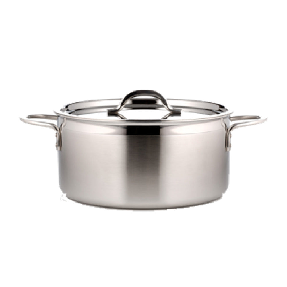The Bon Chef 60302-2TONESS Classic Country French Collection Pot is a meticulously designed culinary vessel, offering a generous 4-quart capacity, ideal for a variety of cooking applications in both residential and professional kitchens. Measuring 9-3/8 inches in diameter and 4-3/8 inches in height, this round pot ensures ample space for preparing soups, stews, and sauces, catering to diverse culinary requirements. Crafted from two-tone stainless steel, this pot combines aesthetic appeal with functional durability, making it a standout choice for chefs who value both style and longevity in their kitchenware. The inclusion of a fitted cover aids in heat retention and moisture control, enhancing the cooking process. Equipped with double handles, this pot ensures ease of handling and stability during use, even when transferring it from stove to table. The Bon Chef 60302-2TONESS is NSF certified, guaranteeing its compliance with rigorous public health and safety standards, a critical aspect for commercial foodservice establishments. This pot is part of the Classic Country French Collection, which is renowned for its robust construction and classic design, making it an invaluable addition to any kitchen looking to merge traditional charm with modern performance.