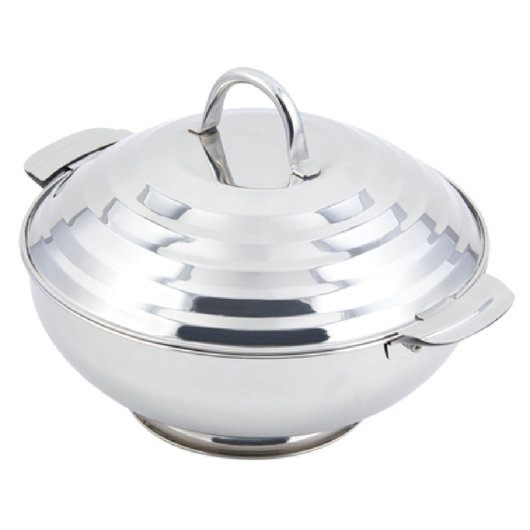 The Bon Chef 61208 Server 11.6" Dia. Round is an expertly crafted serving solution tailored to meet the needs of various segments within the food service industry, including restaurants and catering events. This server features a substantial 11.6-inch diameter, providing ample serving space for a variety of dishes. Constructed with a double wall insulated design, it ensures that the contents maintain their desired temperature for an extended period, enhancing the dining experience. The stainless steel build not only offers a sleek and professional appearance but also guarantees durability and resistance to corrosion, making it suitable for both upscale and high-traffic environments. A notable element of this server is its locking lid, which provides an added layer of security by preventing spills and ensuring food safety during transport and service. The combination of these features makes the Bon Chef 61208 Server a versatile and reliable choice for professionals seeking a balance of style, functionality, and longevity in their serving equipment. Whether used in a bustling restaurant or a sophisticated catered event, this server stands out as a testament to quality engineering in food service solutions.
